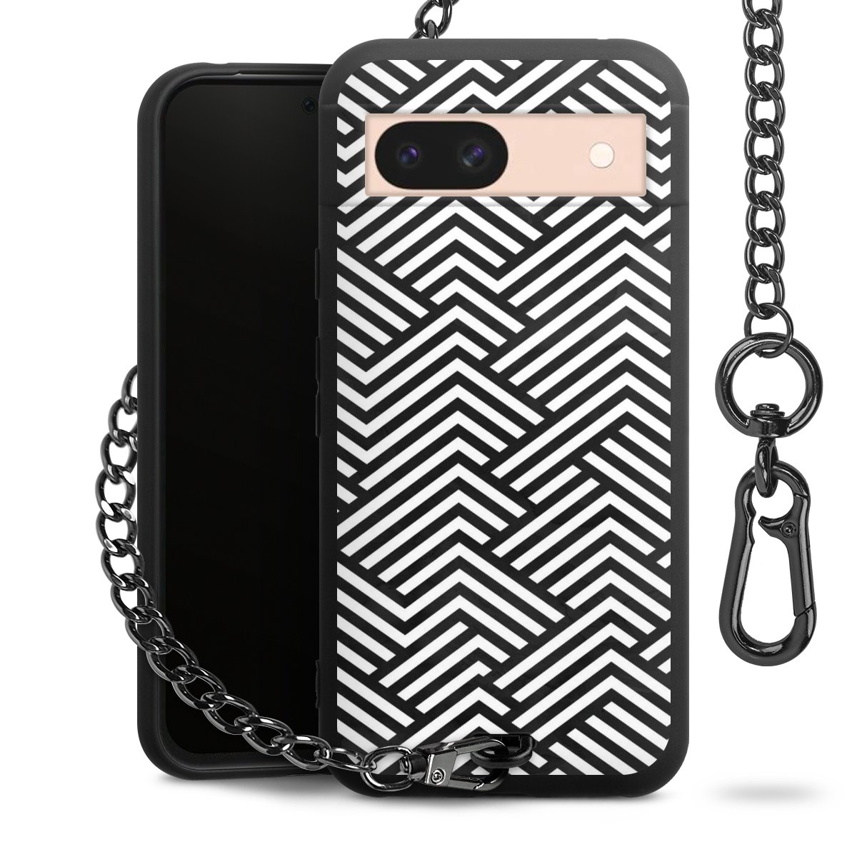 • Mattschwarze Handyhülle mit Metallkette
