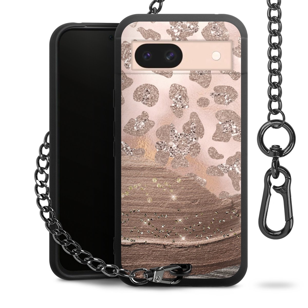 • Mattschwarze Handyhülle mit Metallkette