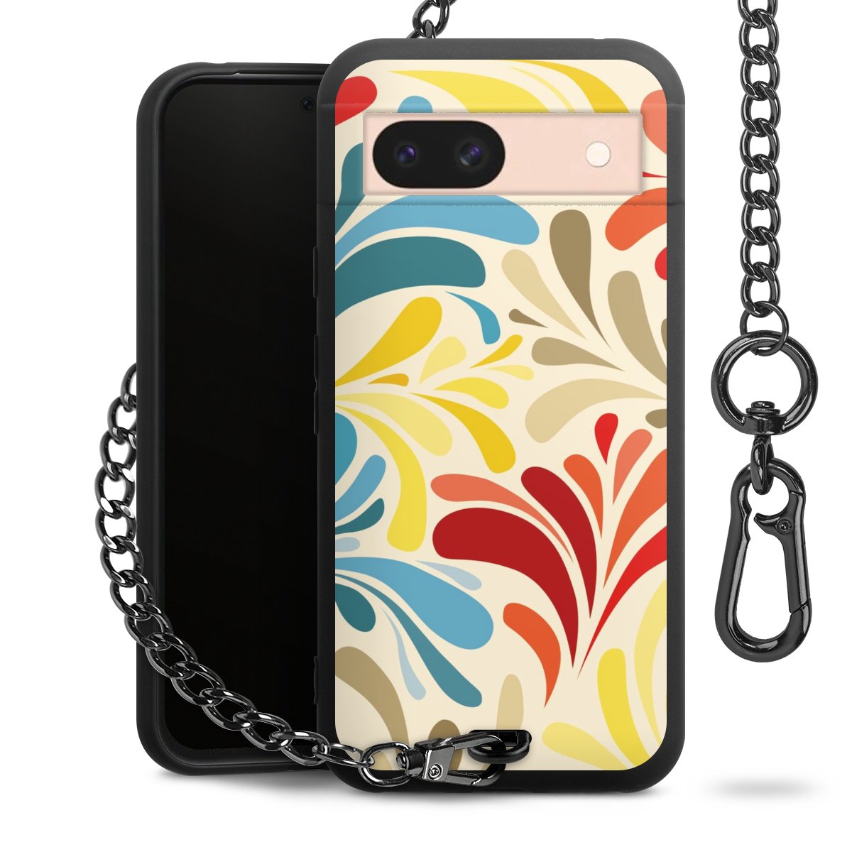 - Mattschwarze Handyhülle mit Metallkette