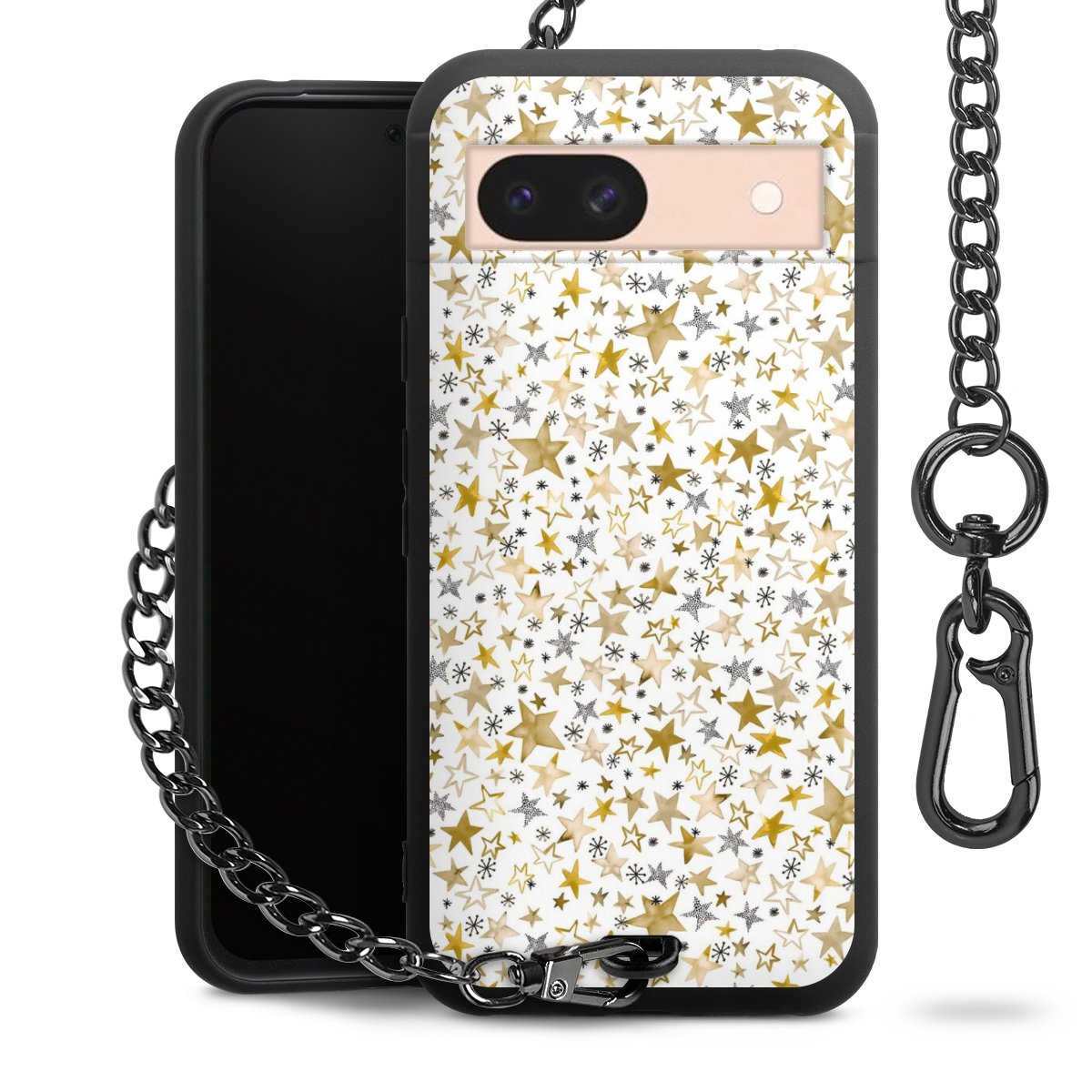 • Mattschwarze Handyhülle mit Metallkette