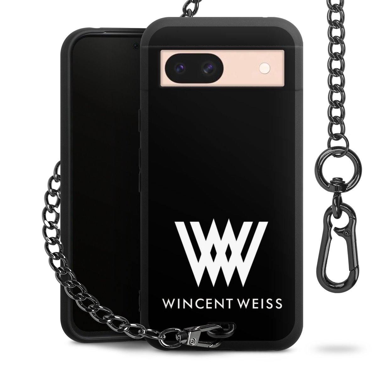 Die mattschwarze Silikon-Handyhülle besteht aus robustem TPU (thermoplastisches Polyurethan). Sie ist flexibel und schützt Dein Smartphone vor Stößen und Kratzern. Die Kette sowie der Karabinerhaken sind aus Metall in Gunmetal-Optik gefertigt. Für dieses Produkt kommen ausschließlich TÜV-geprüfte Materialien zum Einsatz.