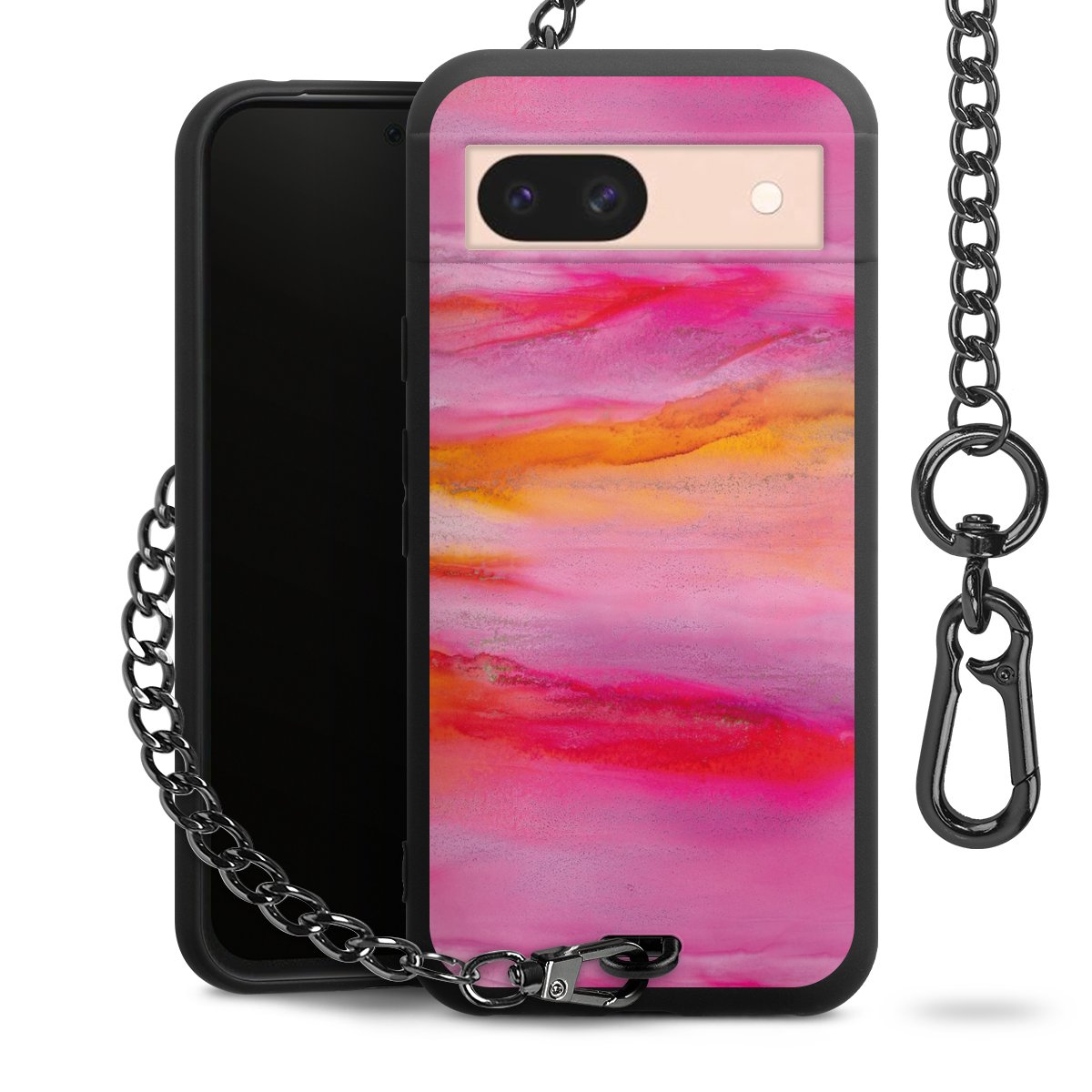 • Mattschwarze Handyhülle mit Metallkette