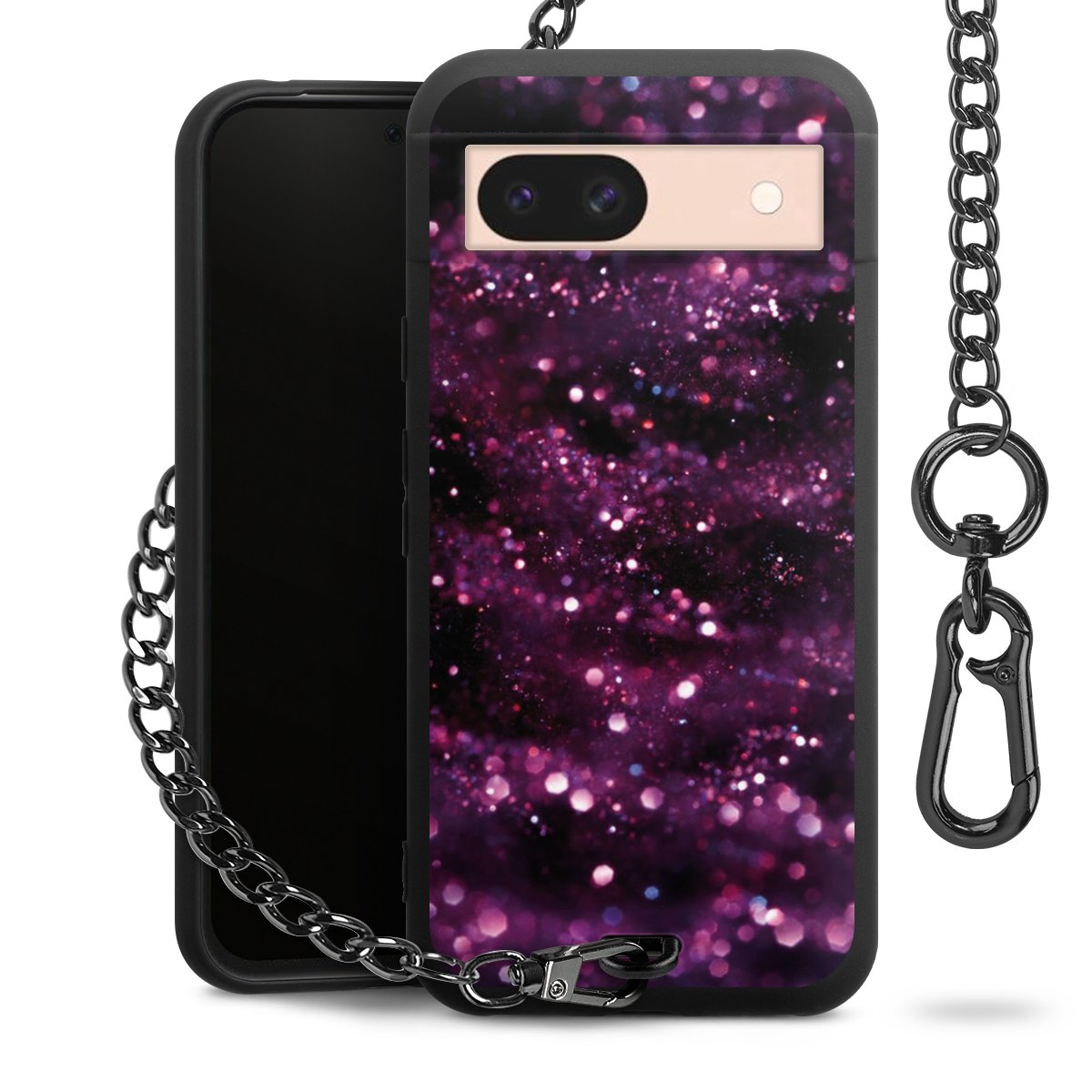 - Mattschwarze Handyhülle mit Metallkette