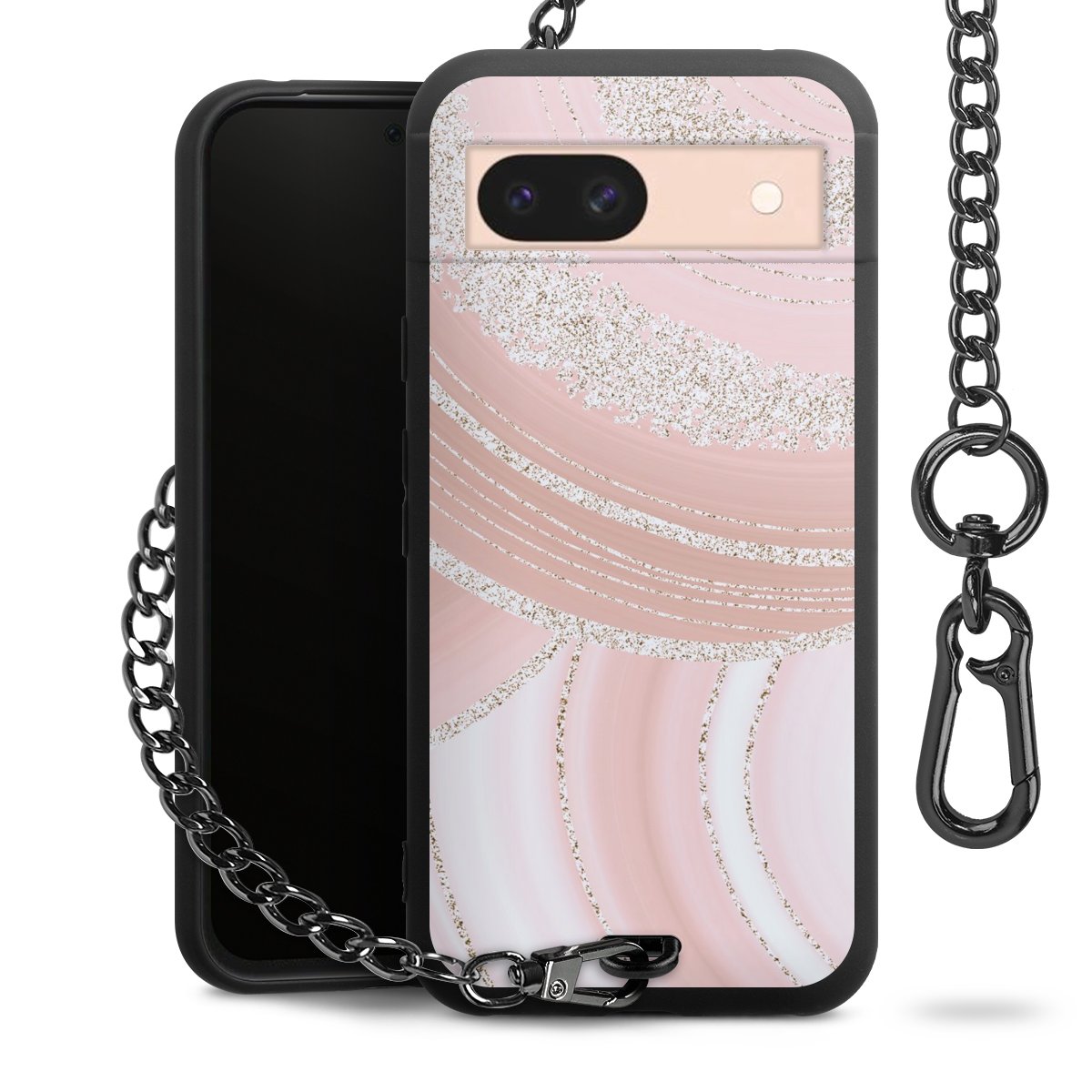 • Mattschwarze Handyhülle mit Metallkette