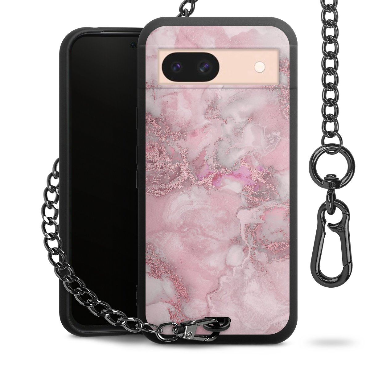 • Mattschwarze Handyhülle mit Metallkette