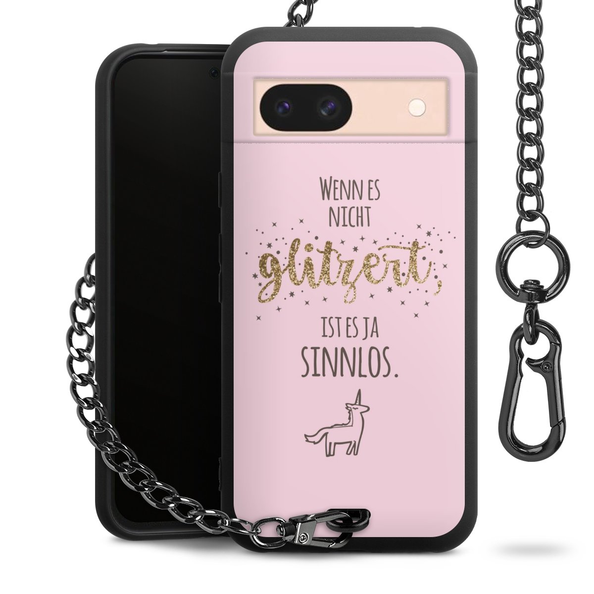• Mattschwarze Handyhülle mit Metallkette