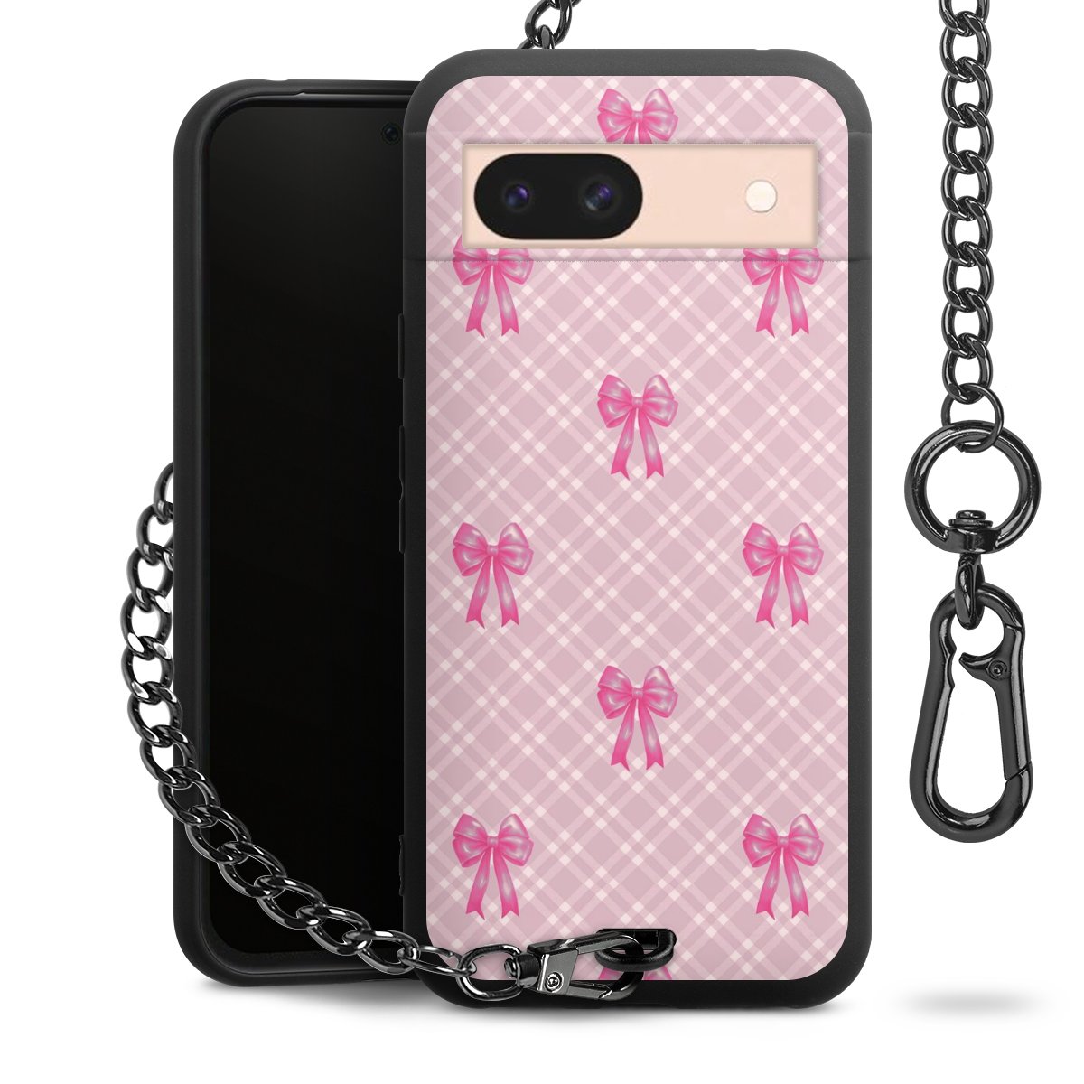 • Mattschwarze Handyhülle mit Metallkette