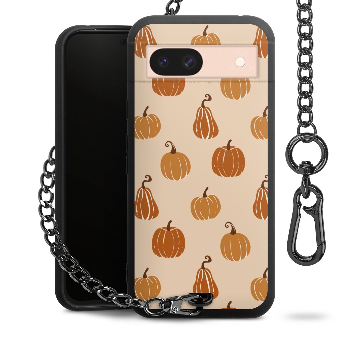 - Mattschwarze Handyhülle mit Metallkette