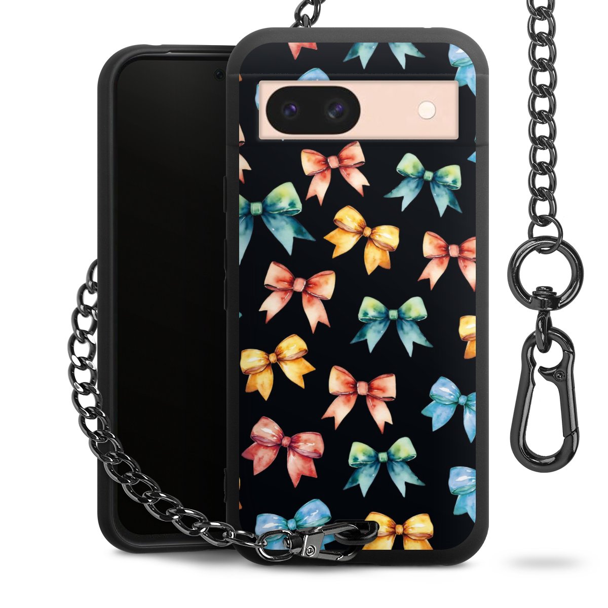 • Mattschwarze Handyhülle mit Metallkette