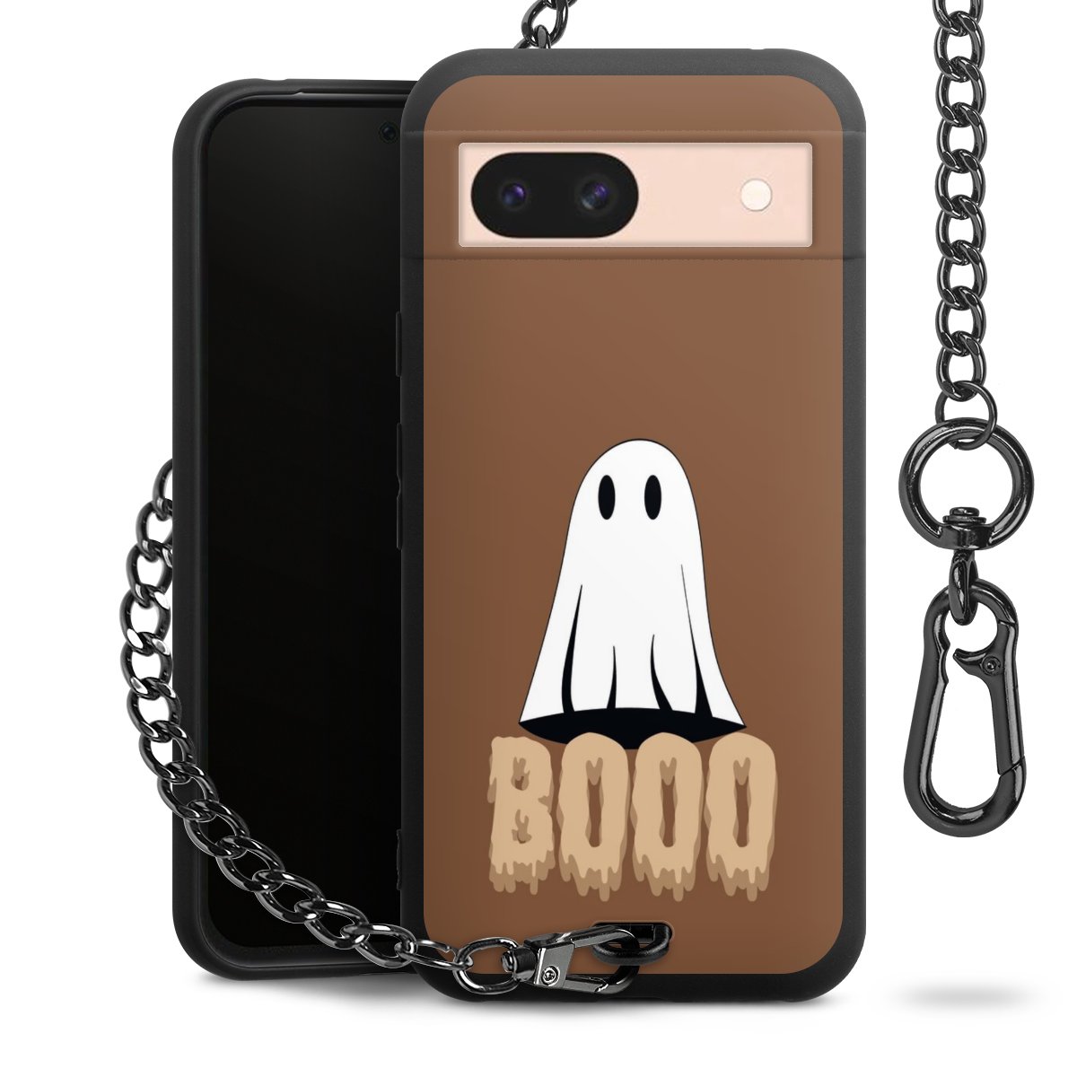 - Mattschwarze Handyhülle mit Metallkette