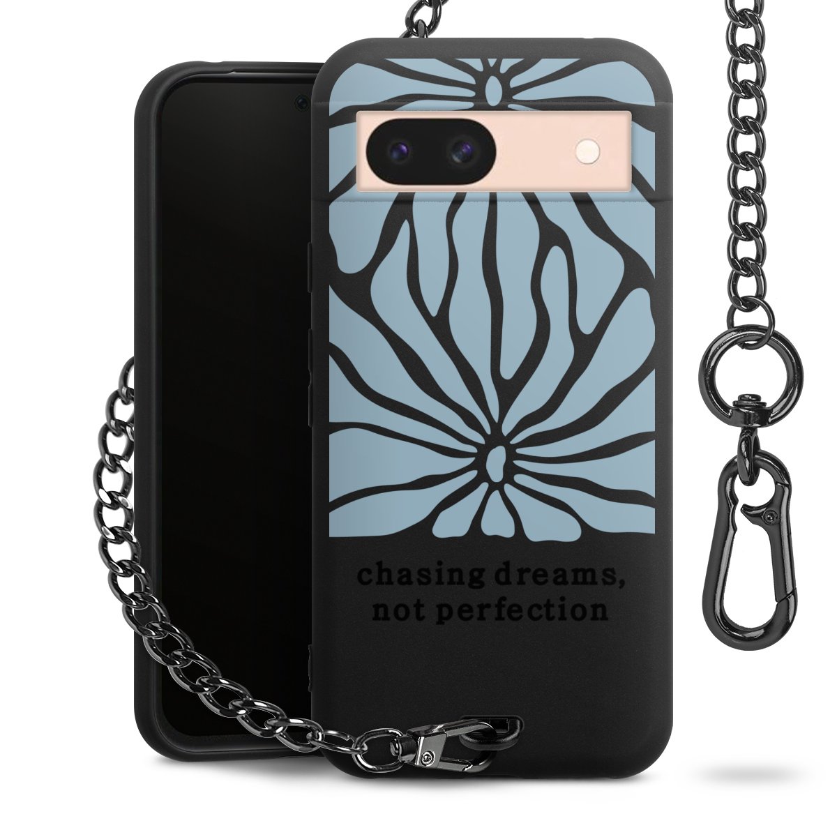 • Mattschwarze Handyhülle mit Metallkette