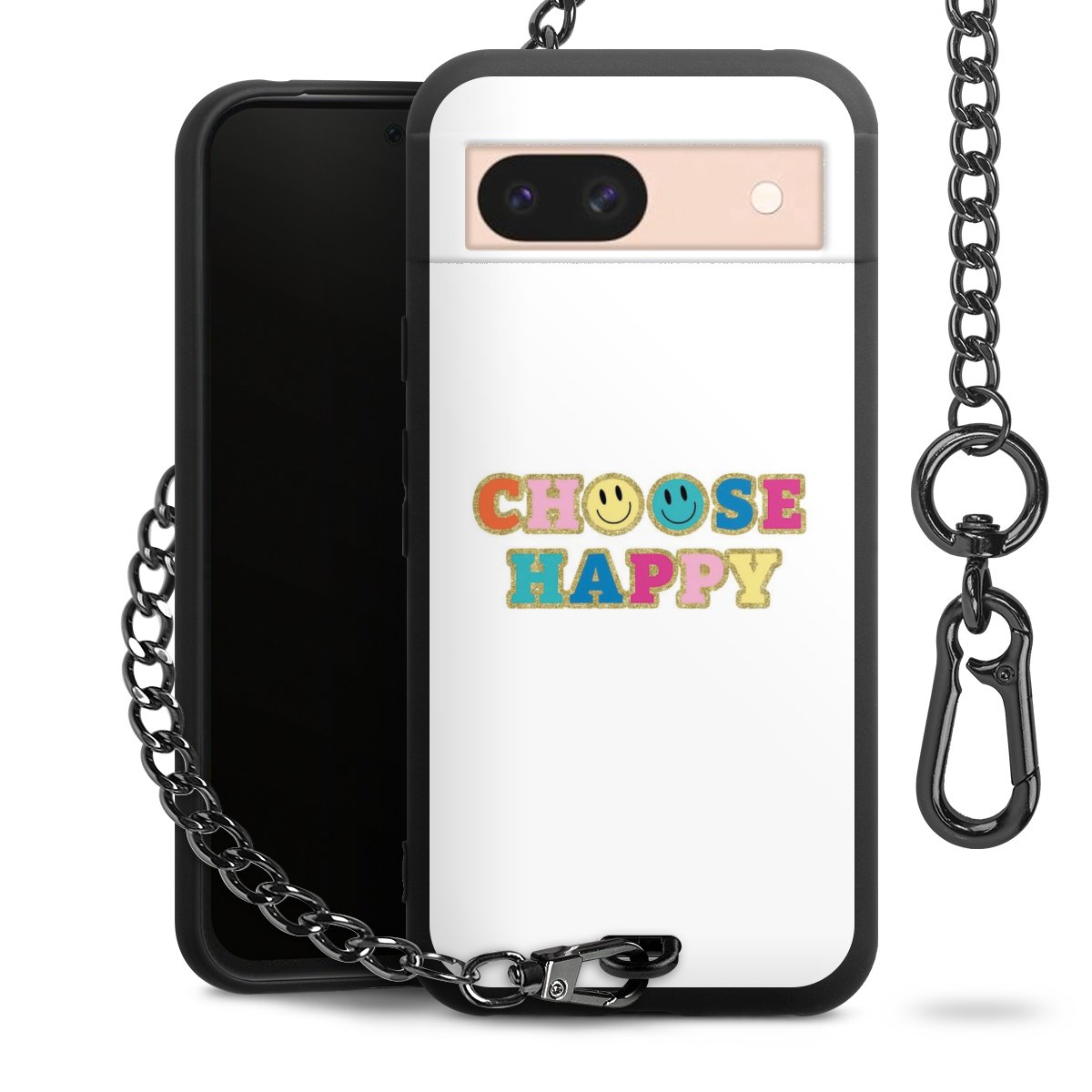 Die mattschwarze Silikon-Handyhülle besteht aus robustem TPU (thermoplastisches Polyurethan). Sie ist flexibel und schützt Dein Smartphone vor Stößen und Kratzern. Die Kette sowie der Karabinerhaken sind aus Metall in Gunmetal-Optik gefertigt. Für dieses Produkt kommen ausschließlich TÜV-geprüfte Materialien zum Einsatz.