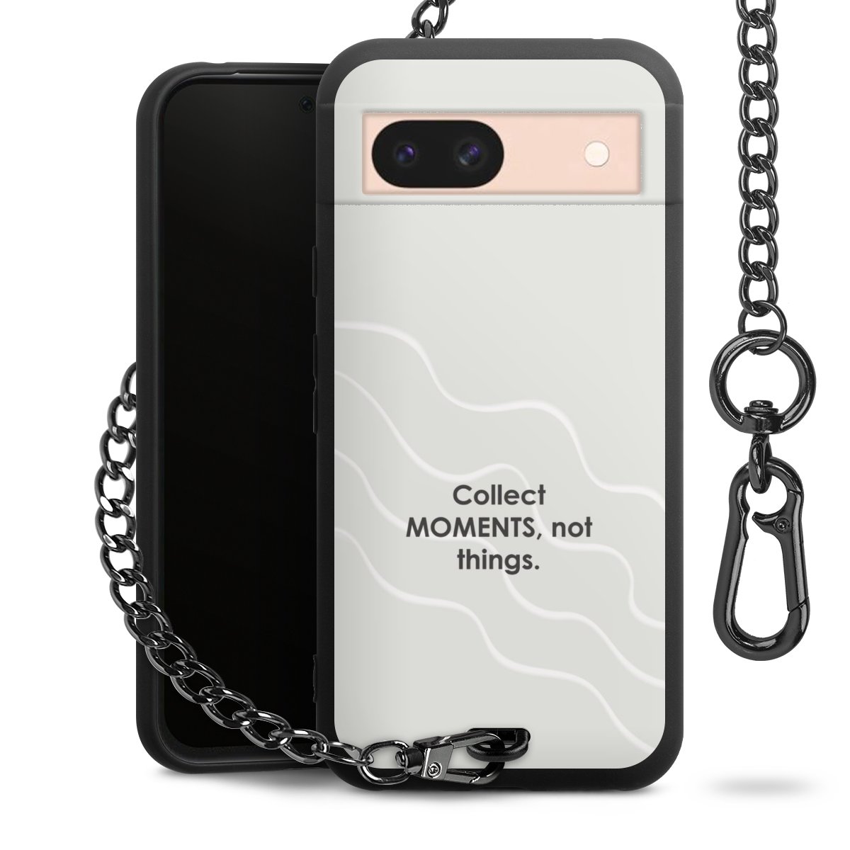 - Mattschwarze Handyhülle mit Metallkette