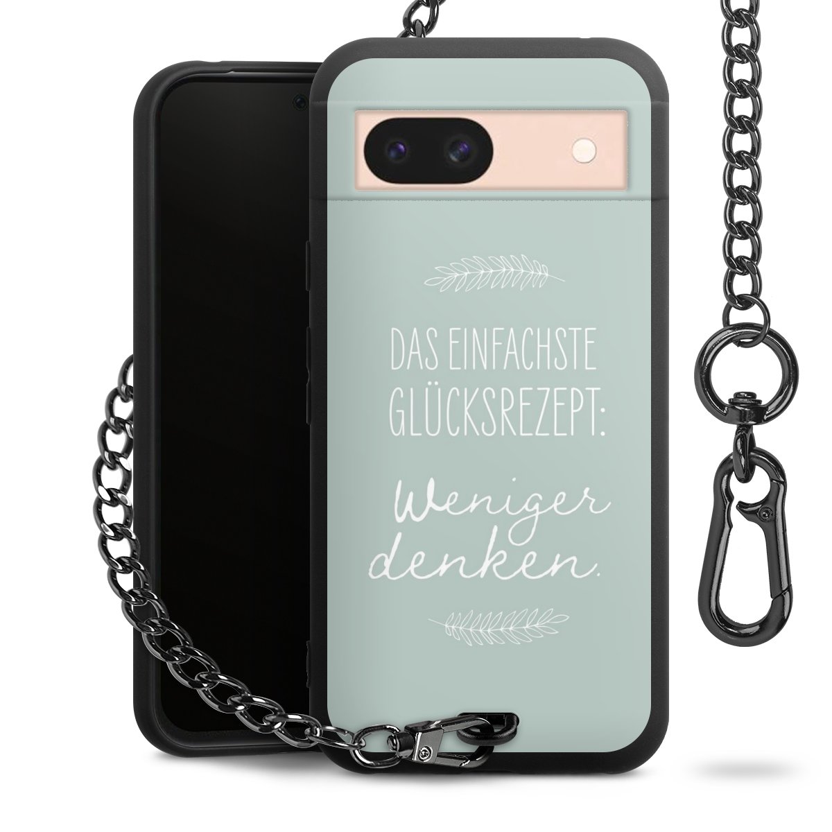 Die mattschwarze Silikon-Handyhülle besteht aus robustem TPU (thermoplastisches Polyurethan). Sie ist flexibel und schützt Dein Smartphone vor Stößen und Kratzern. Die Kette sowie der Karabinerhaken sind aus Metall in Gunmetal-Optik gefertigt. Für dieses Produkt kommen ausschließlich TÜV-geprüfte Materialien zum Einsatz.