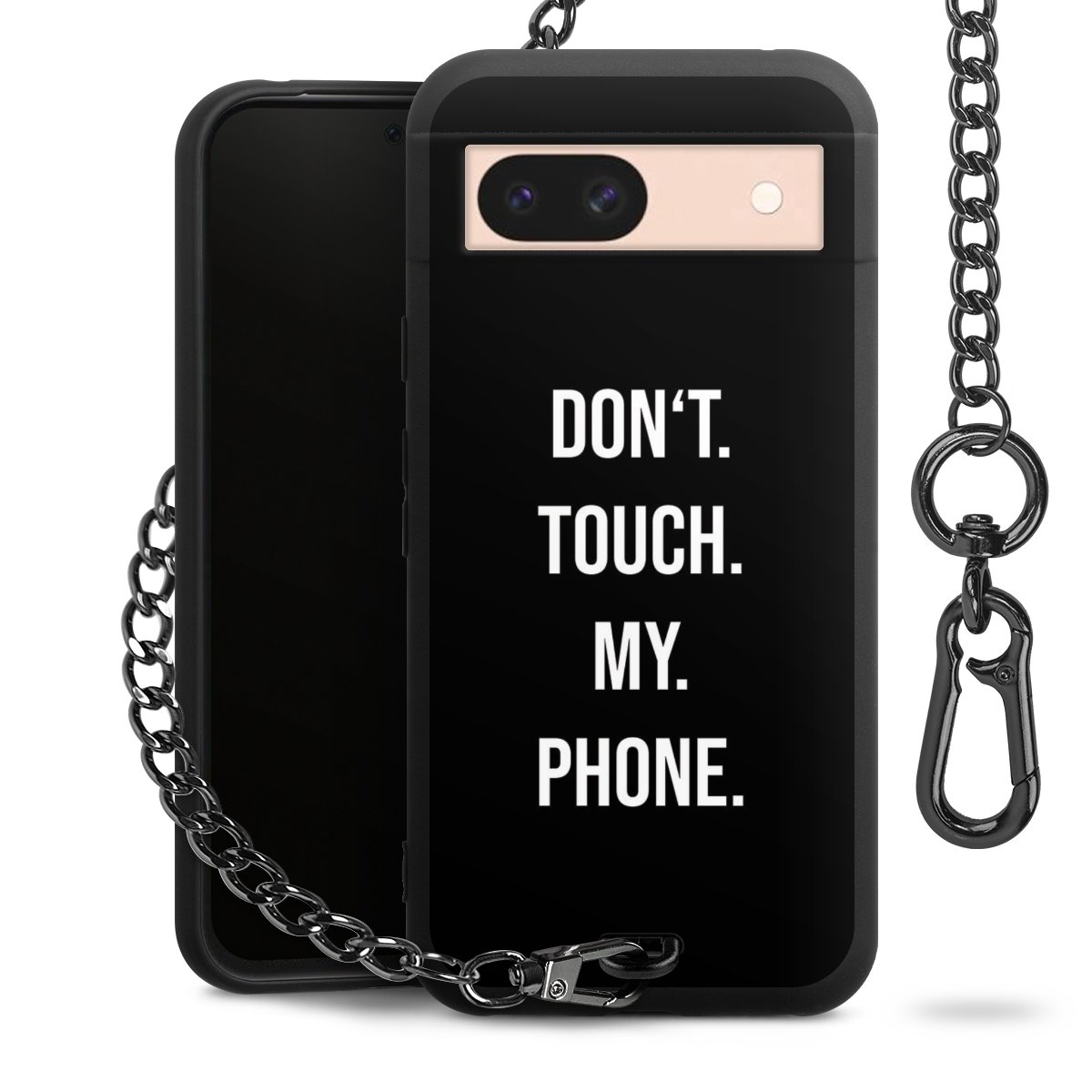 Die mattschwarze Silikon-Handyhülle besteht aus robustem TPU (thermoplastisches Polyurethan). Sie ist flexibel und schützt Dein Smartphone vor Stößen und Kratzern. Die Kette sowie der Karabinerhaken sind aus Metall in Gunmetal-Optik gefertigt. Für dieses Produkt kommen ausschließlich TÜV-geprüfte Materialien zum Einsatz.