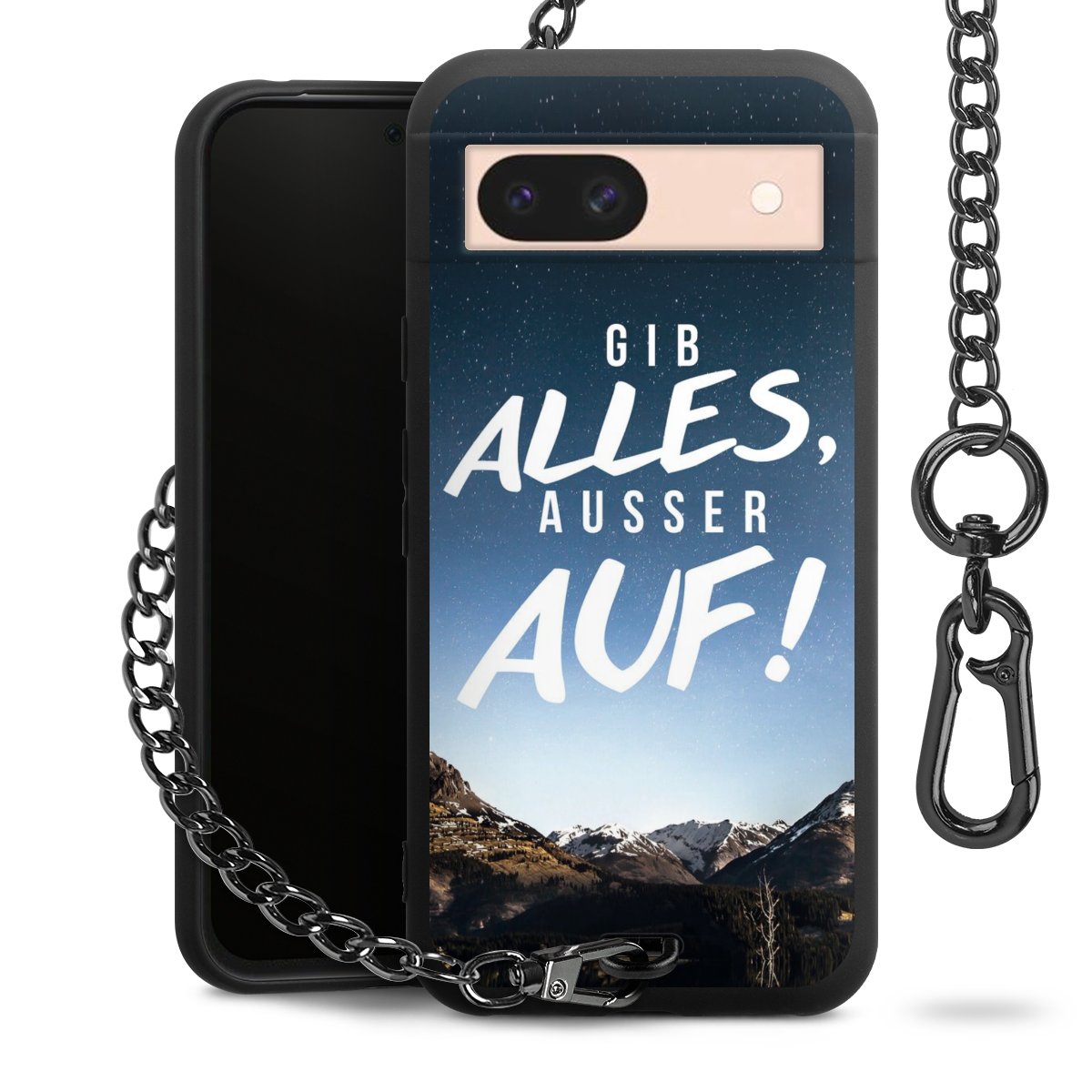 • Mattschwarze Handyhülle mit Metallkette