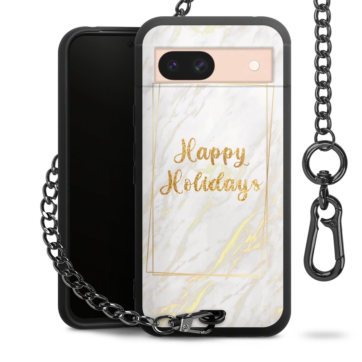 - Mattschwarze Handyhülle mit Metallkette