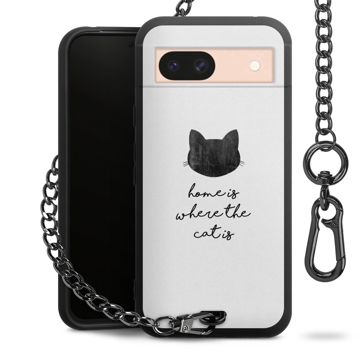 Die mattschwarze Silikon-Handyhülle besteht aus robustem TPU (thermoplastisches Polyurethan). Sie ist flexibel und schützt Dein Smartphone vor Stößen und Kratzern. Die Kette sowie der Karabinerhaken sind aus Metall in Gunmetal-Optik gefertigt. Für dieses Produkt kommen ausschließlich TÜV-geprüfte Materialien zum Einsatz.