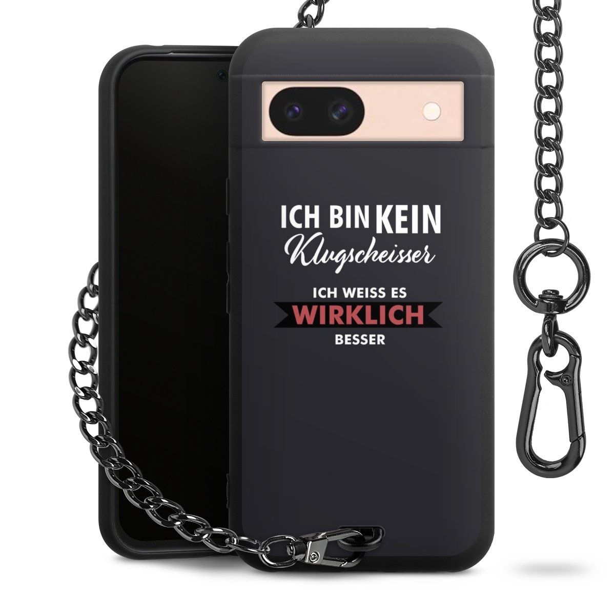 - Mattschwarze Handyhülle mit Metallkette