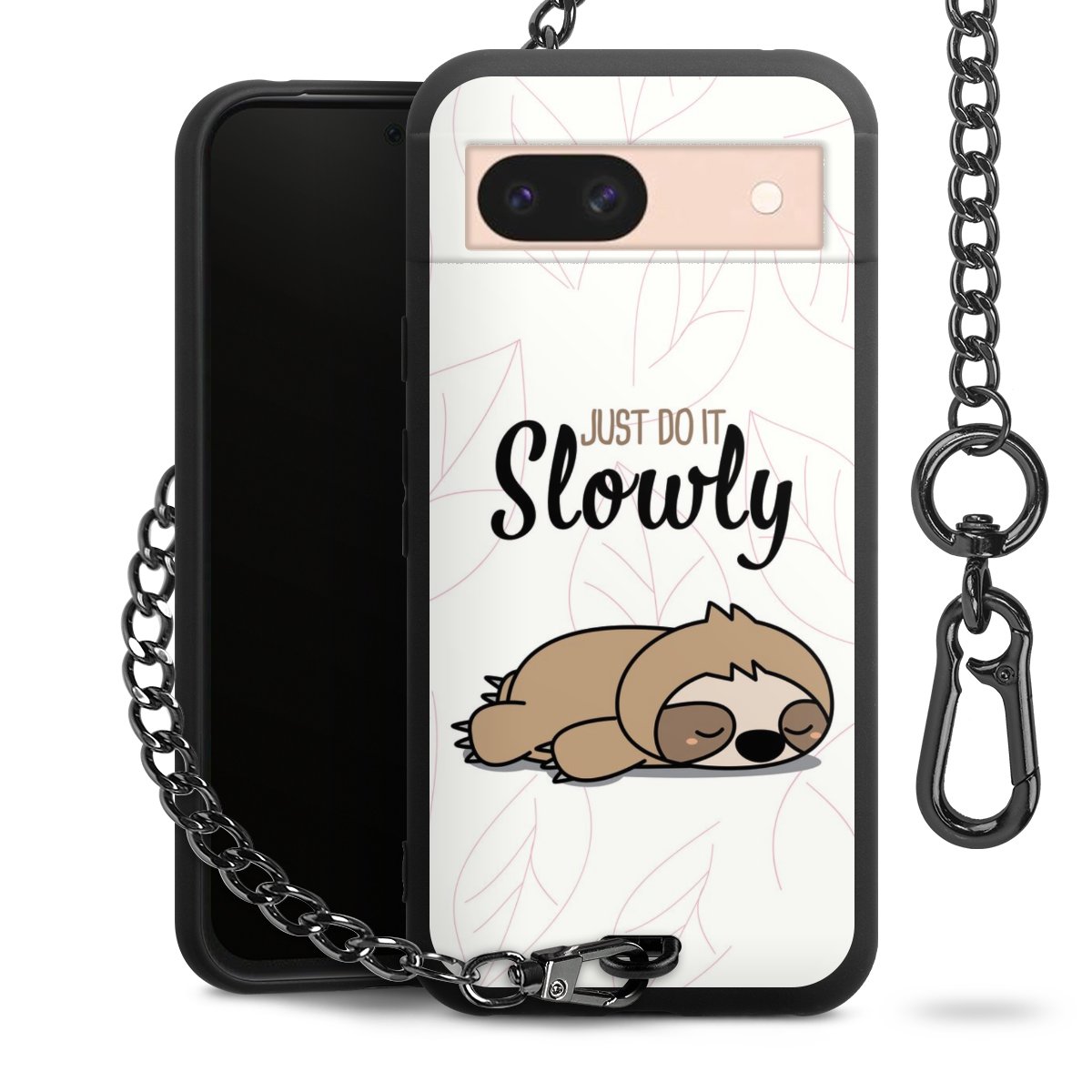 Die mattschwarze Silikon-Handyhülle besteht aus robustem TPU (thermoplastisches Polyurethan). Sie ist flexibel und schützt Dein Smartphone vor Stößen und Kratzern. Die Kette sowie der Karabinerhaken sind aus Metall in Gunmetal-Optik gefertigt. Für dieses Produkt kommen ausschließlich TÜV-geprüfte Materialien zum Einsatz.