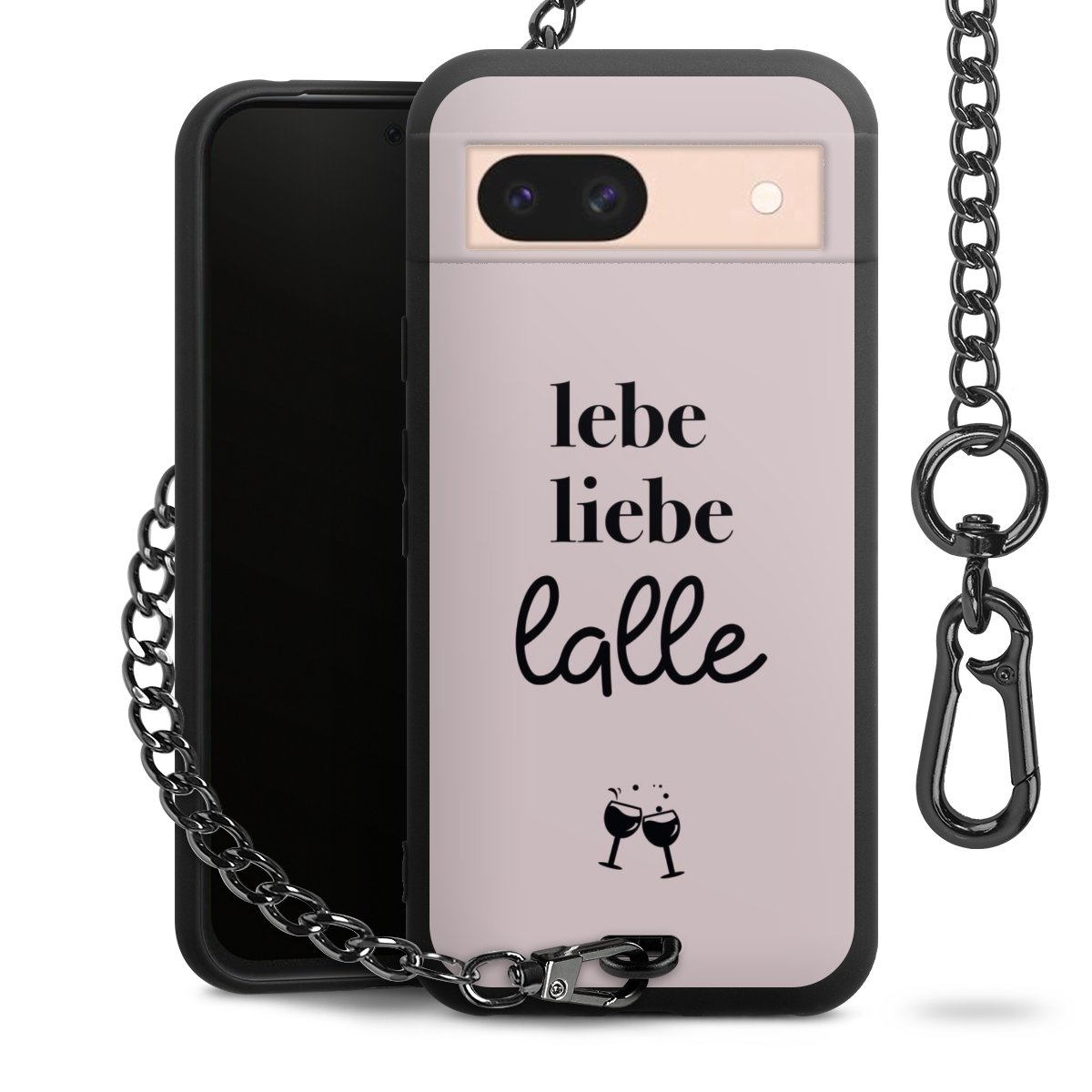Die mattschwarze Silikon-Handyhülle besteht aus robustem TPU (thermoplastisches Polyurethan). Sie ist flexibel und schützt Dein Smartphone vor Stößen und Kratzern. Die Kette sowie der Karabinerhaken sind aus Metall in Gunmetal-Optik gefertigt. Für dieses Produkt kommen ausschließlich TÜV-geprüfte Materialien zum Einsatz.