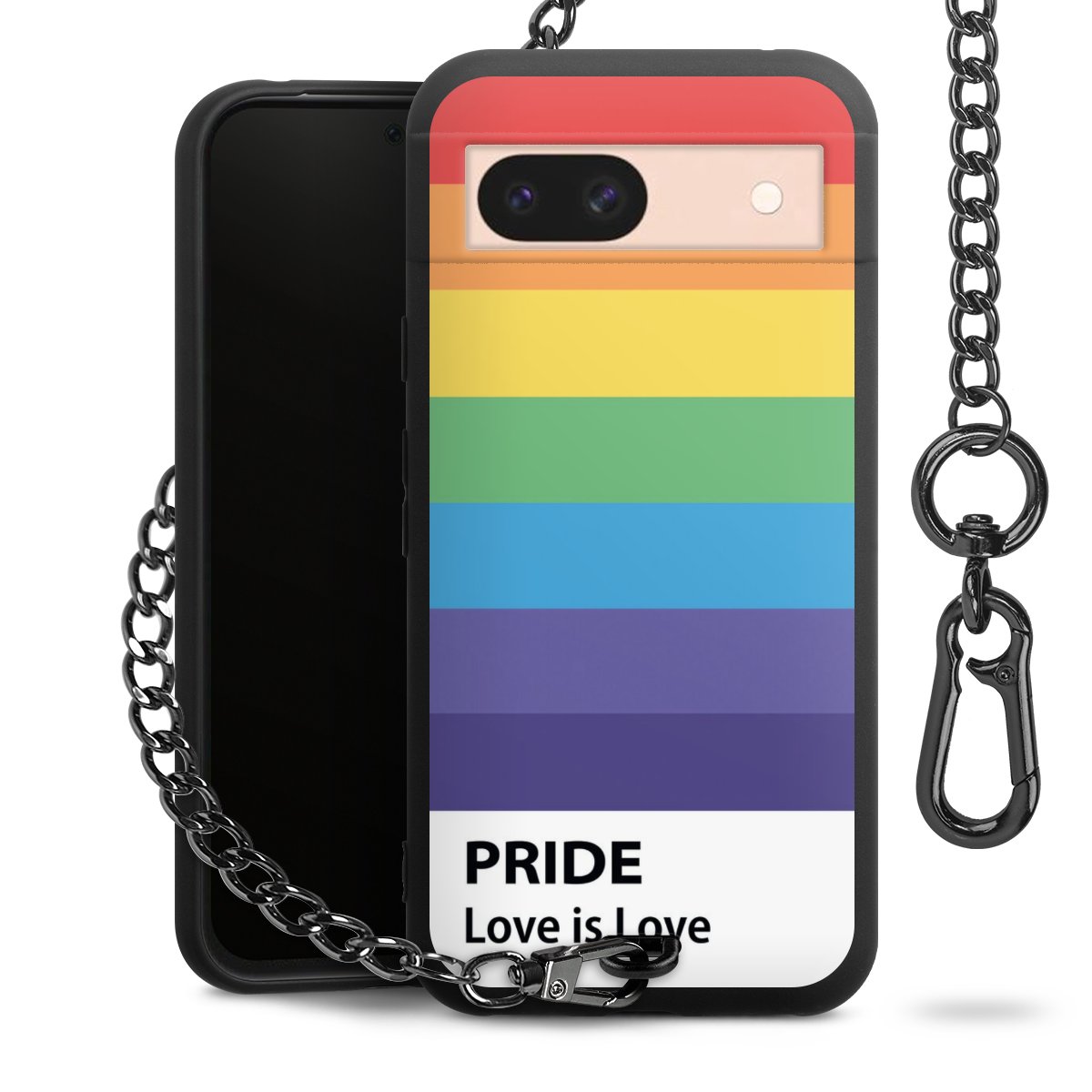 Die mattschwarze Silikon-Handyhülle besteht aus robustem TPU (thermoplastisches Polyurethan). Sie ist flexibel und schützt Dein Smartphone vor Stößen und Kratzern. Die Kette sowie der Karabinerhaken sind aus Metall in Gunmetal-Optik gefertigt. Für dieses Produkt kommen ausschließlich TÜV-geprüfte Materialien zum Einsatz.