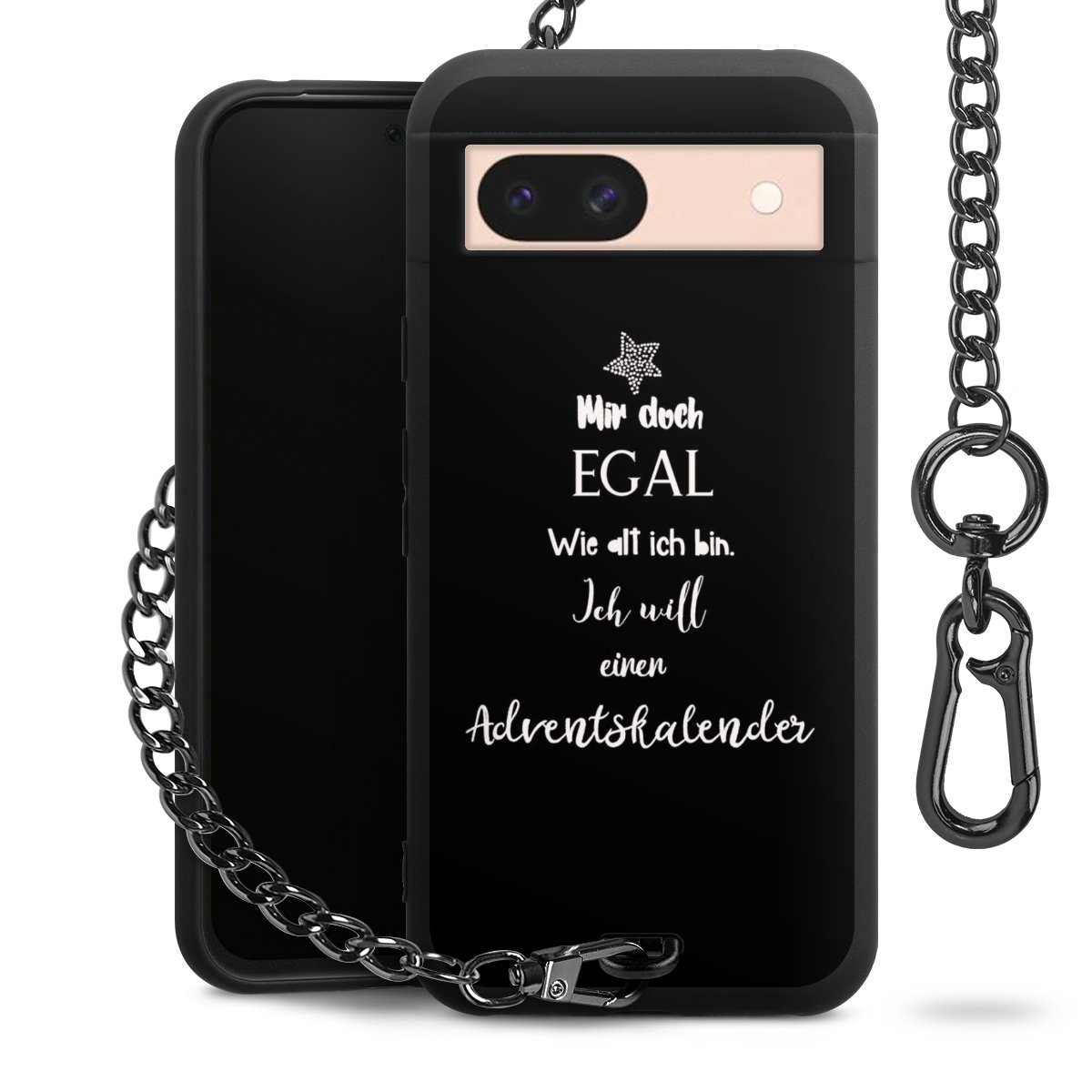 Die mattschwarze Silikon-Handyhülle besteht aus robustem TPU (thermoplastisches Polyurethan). Sie ist flexibel und schützt Dein Smartphone vor Stößen und Kratzern. Die Kette sowie der Karabinerhaken sind aus Metall in Gunmetal-Optik gefertigt. Für dieses Produkt kommen ausschließlich TÜV-geprüfte Materialien zum Einsatz.