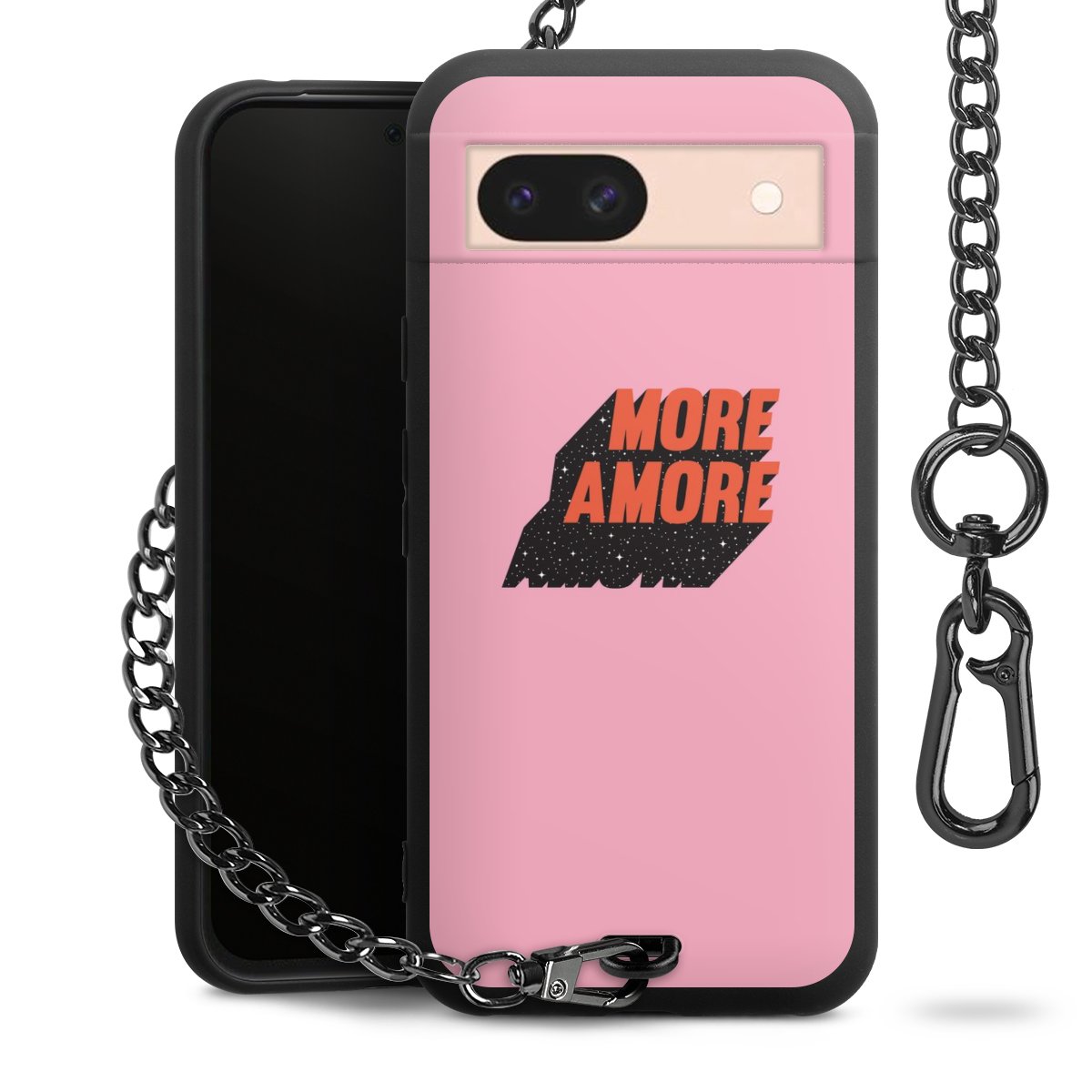 • Mattschwarze Handyhülle mit Metallkette