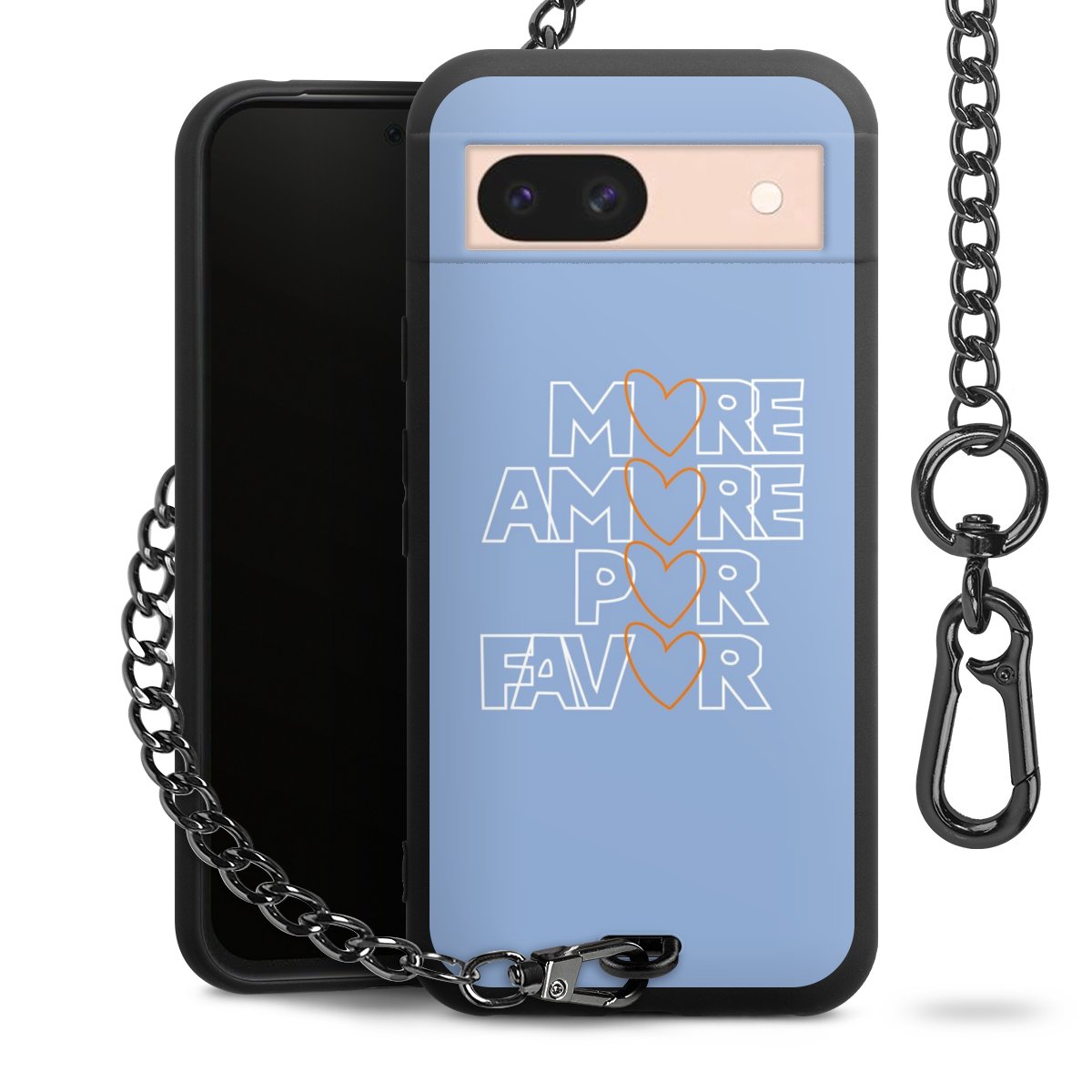 - Mattschwarze Handyhülle mit Metallkette