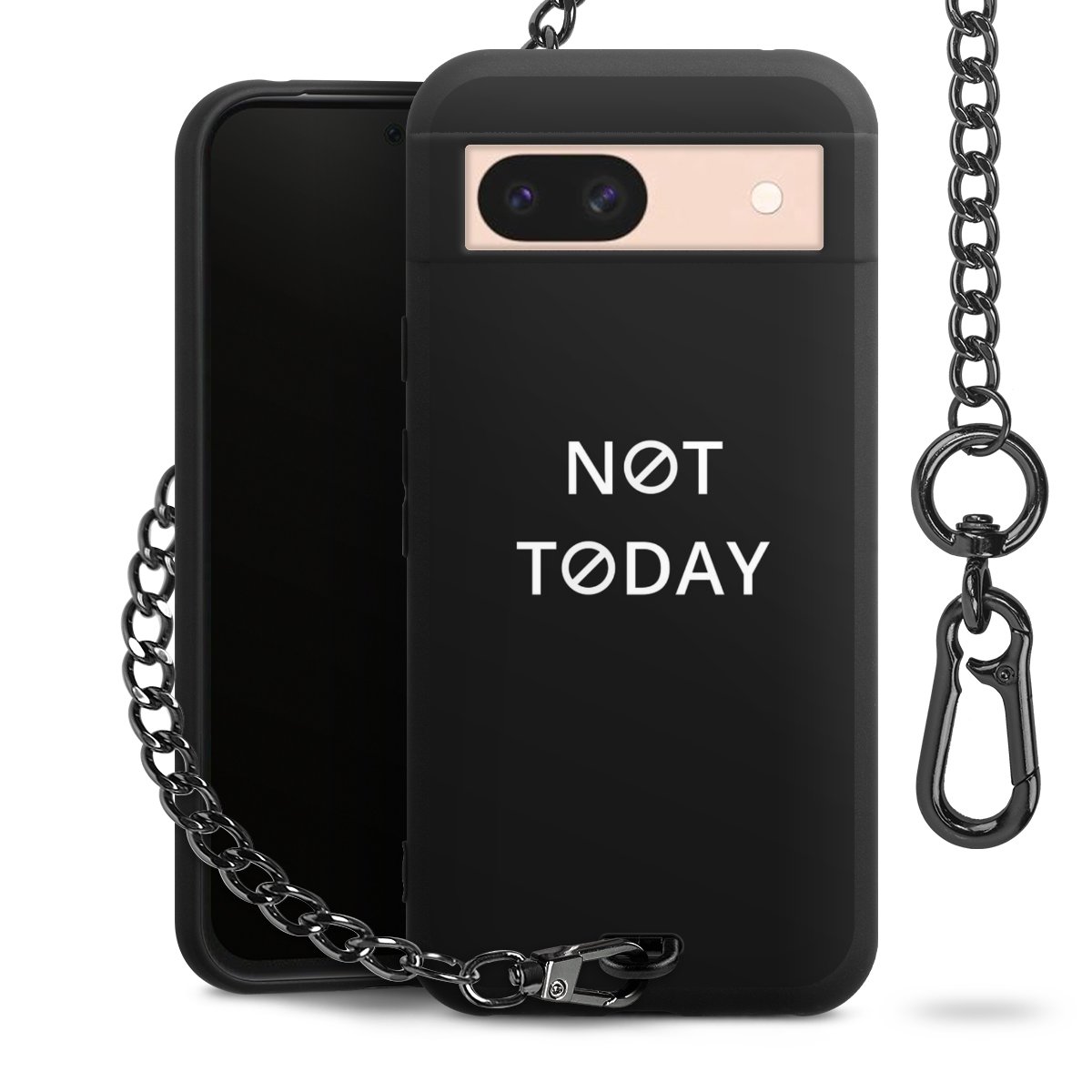 - Mattschwarze Handyhülle mit Metallkette