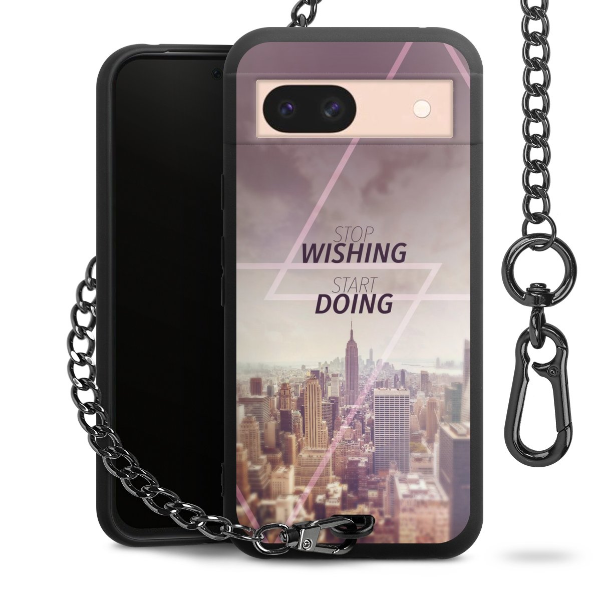 - Mattschwarze Handyhülle mit Metallkette