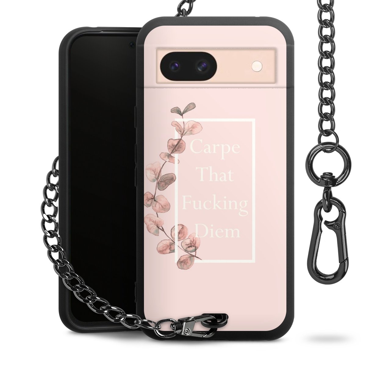 Die mattschwarze Silikon-Handyhülle besteht aus robustem TPU (thermoplastisches Polyurethan). Sie ist flexibel und schützt Dein Smartphone vor Stößen und Kratzern. Die Kette sowie der Karabinerhaken sind aus Metall in Gunmetal-Optik gefertigt. Für dieses Produkt kommen ausschließlich TÜV-geprüfte Materialien zum Einsatz.