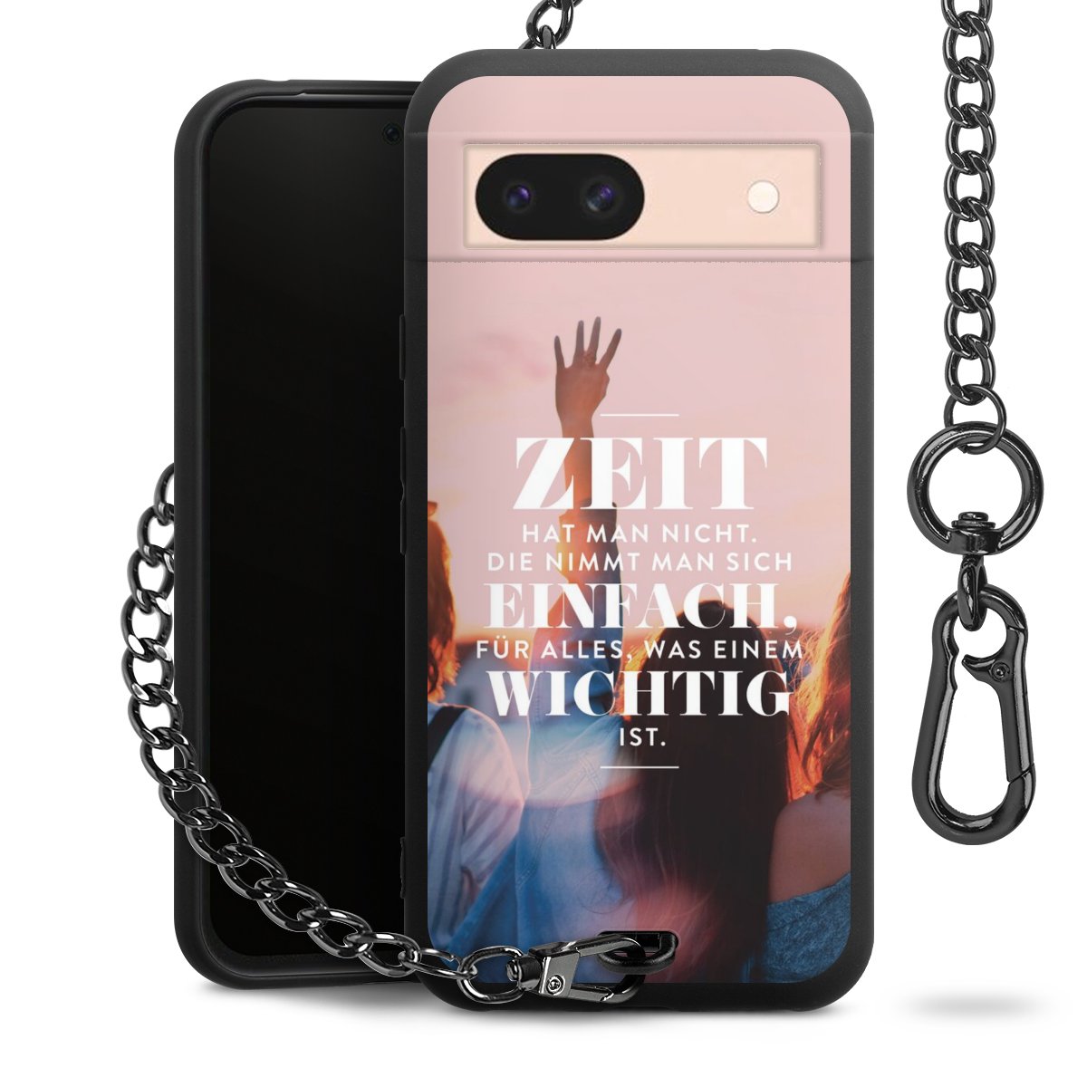 Die mattschwarze Silikon-Handyhülle besteht aus robustem TPU (thermoplastisches Polyurethan). Sie ist flexibel und schützt Dein Smartphone vor Stößen und Kratzern. Die Kette sowie der Karabinerhaken sind aus Metall in Gunmetal-Optik gefertigt. Für dieses Produkt kommen ausschließlich TÜV-geprüfte Materialien zum Einsatz.