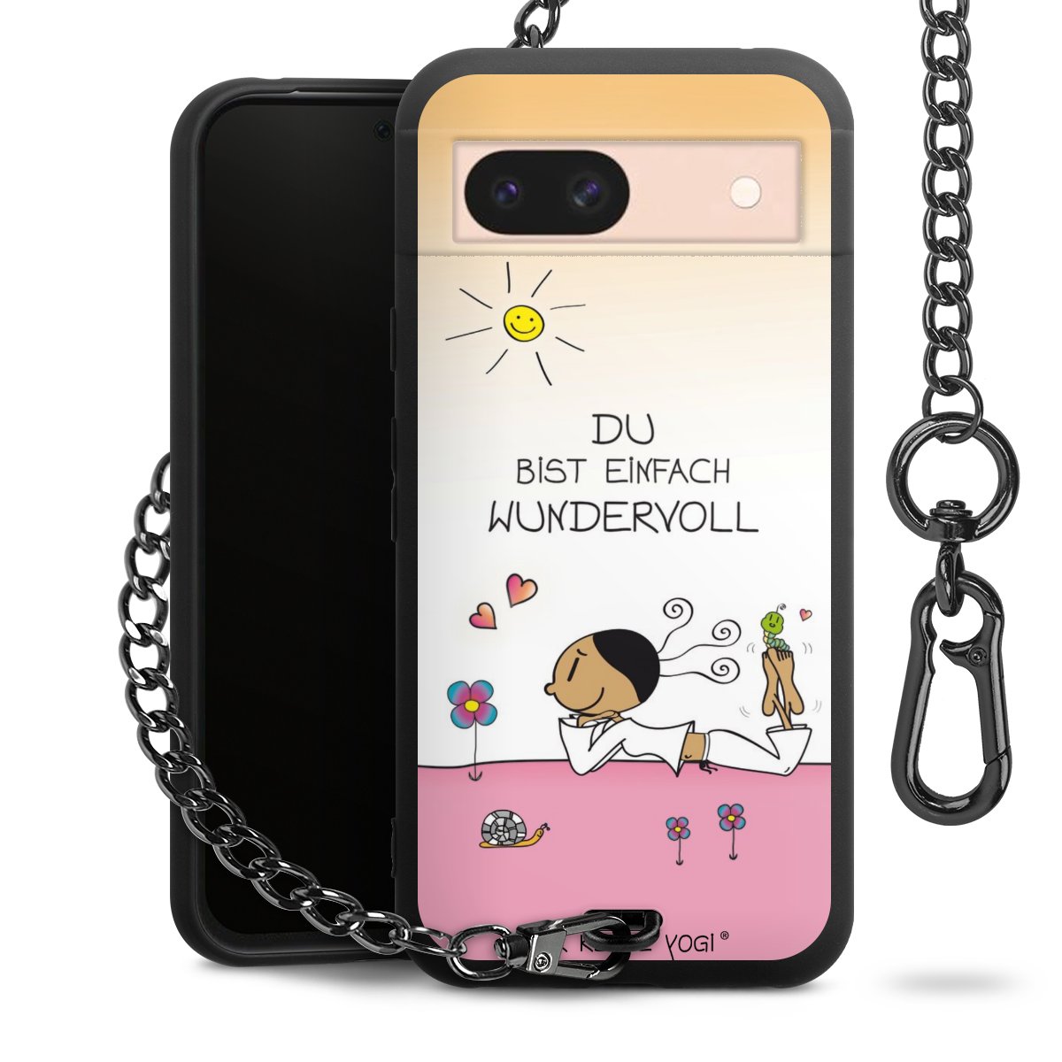 Die mattschwarze Silikon-Handyhülle besteht aus robustem TPU (thermoplastisches Polyurethan). Sie ist flexibel und schützt Dein Smartphone vor Stößen und Kratzern. Die Kette sowie der Karabinerhaken sind aus Metall in Gunmetal-Optik gefertigt. Für dieses Produkt kommen ausschließlich TÜV-geprüfte Materialien zum Einsatz.