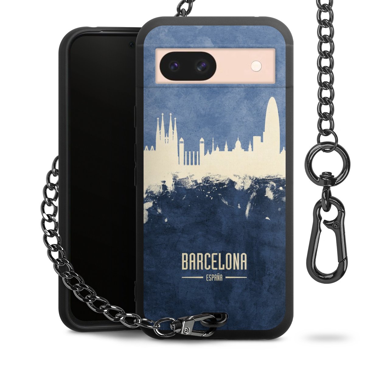 • Mattschwarze Handyhülle mit Metallkette