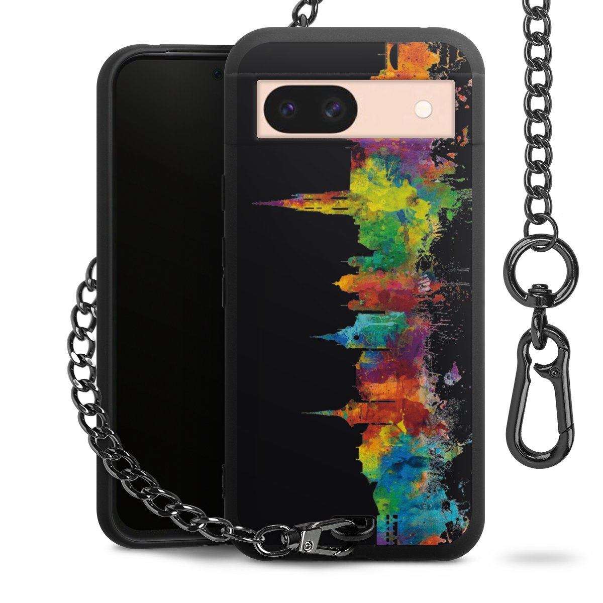 Die mattschwarze Silikon-Handyhülle besteht aus robustem TPU (thermoplastisches Polyurethan). Sie ist flexibel und schützt Dein Smartphone vor Stößen und Kratzern. Die Kette sowie der Karabinerhaken sind aus Metall in Gunmetal-Optik gefertigt. Für dieses Produkt kommen ausschließlich TÜV-geprüfte Materialien zum Einsatz.