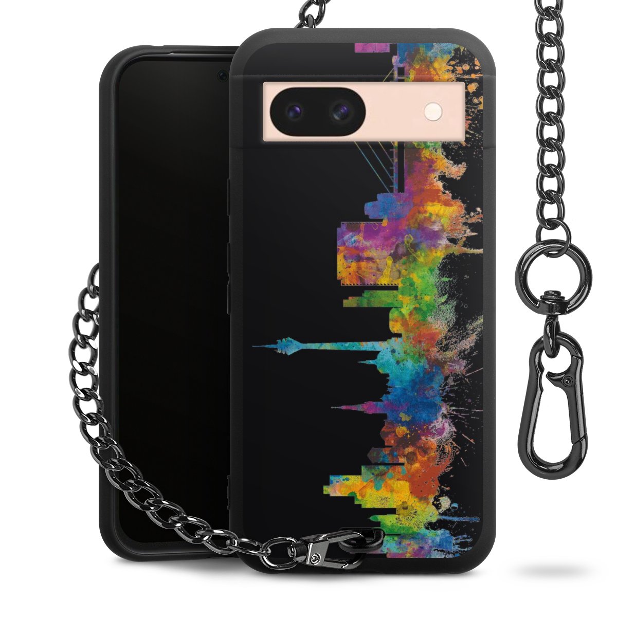 Die mattschwarze Silikon-Handyhülle besteht aus robustem TPU (thermoplastisches Polyurethan). Sie ist flexibel und schützt Dein Smartphone vor Stößen und Kratzern. Die Kette sowie der Karabinerhaken sind aus Metall in Gunmetal-Optik gefertigt. Für dieses Produkt kommen ausschließlich TÜV-geprüfte Materialien zum Einsatz.