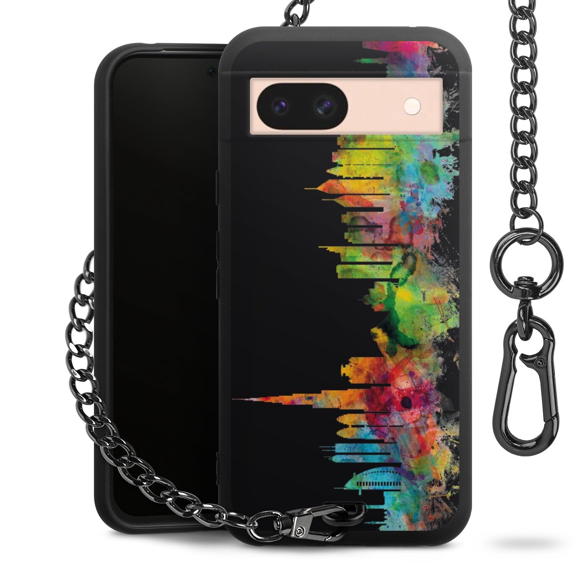 Die mattschwarze Silikon-Handyhülle besteht aus robustem TPU (thermoplastisches Polyurethan). Sie ist flexibel und schützt Dein Smartphone vor Stößen und Kratzern. Die Kette sowie der Karabinerhaken sind aus Metall in Gunmetal-Optik gefertigt. Für dieses Produkt kommen ausschließlich TÜV-geprüfte Materialien zum Einsatz.