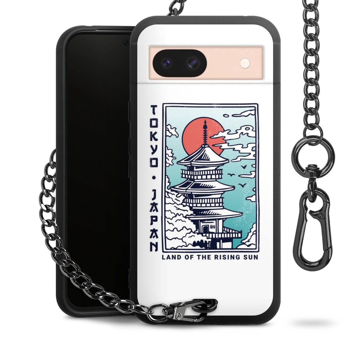 Die mattschwarze Silikon-Handyhülle besteht aus robustem TPU (thermoplastisches Polyurethan). Sie ist flexibel und schützt Dein Smartphone vor Stößen und Kratzern. Die Kette sowie der Karabinerhaken sind aus Metall in Gunmetal-Optik gefertigt. Für dieses Produkt kommen ausschließlich TÜV-geprüfte Materialien zum Einsatz.
