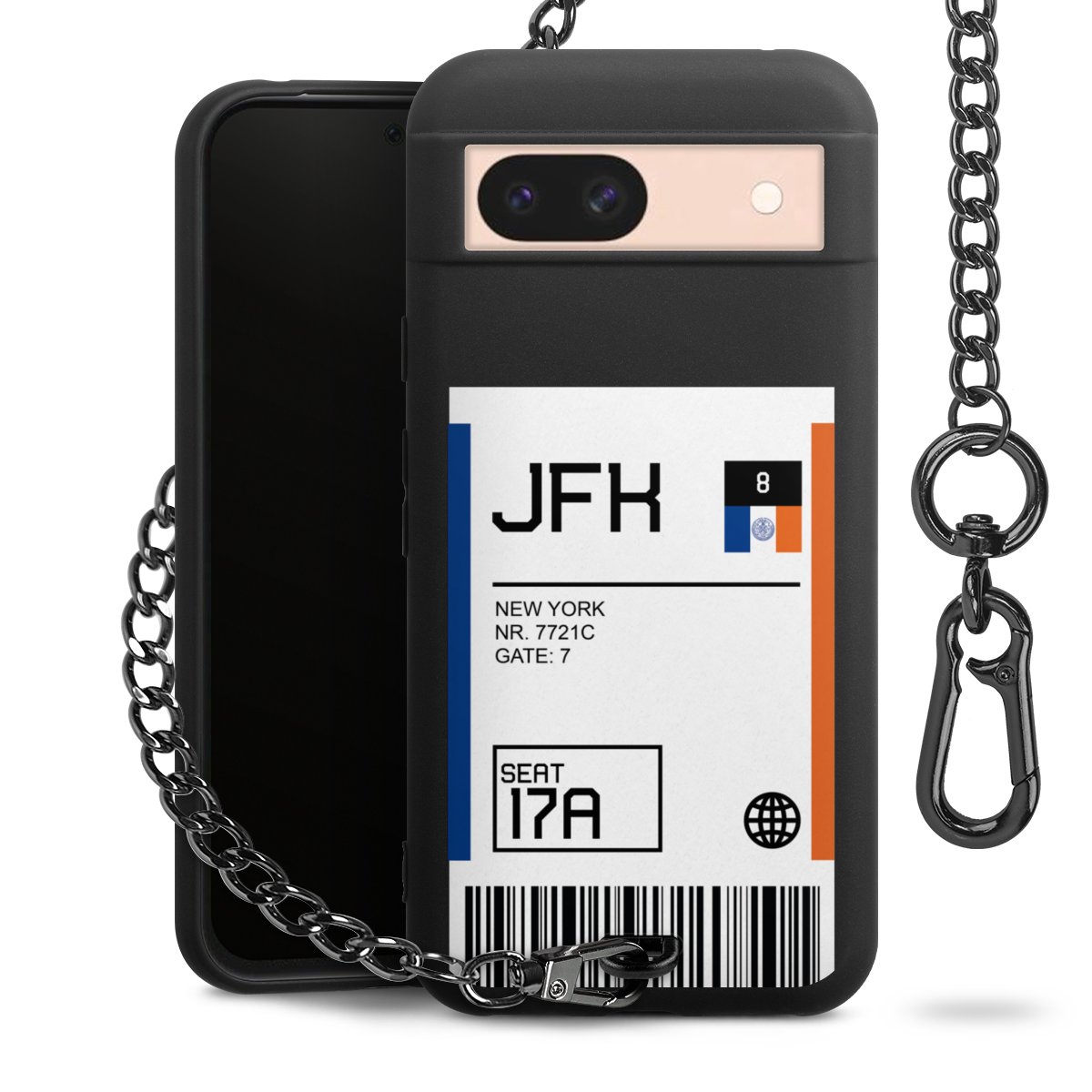 - Mattschwarze Handyhülle mit Metallkette