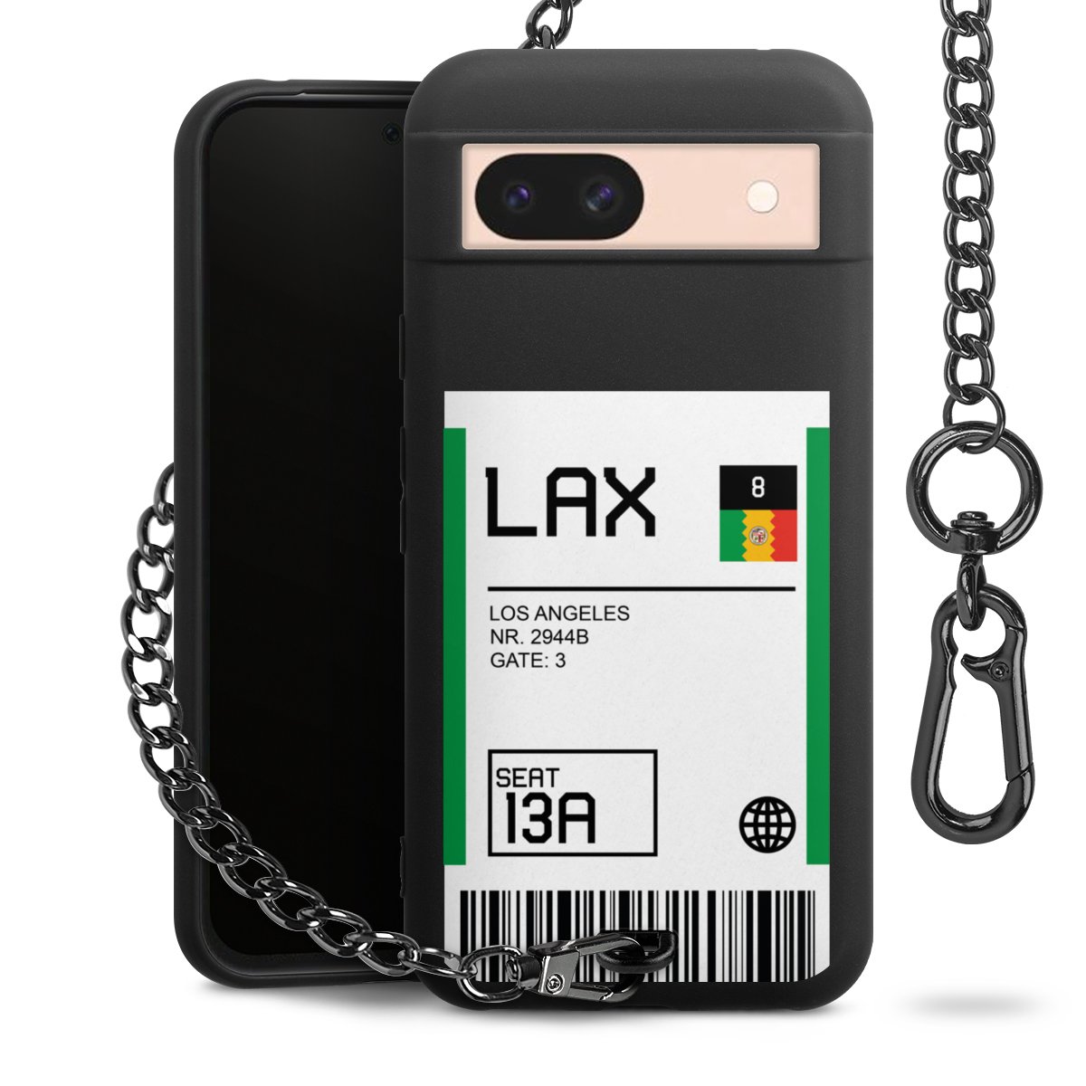 • Mattschwarze Handyhülle mit Metallkette