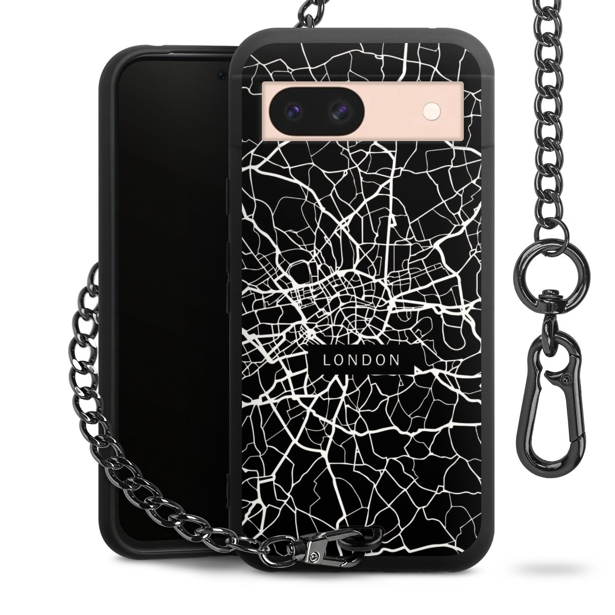 - Mattschwarze Handyhülle mit Metallkette