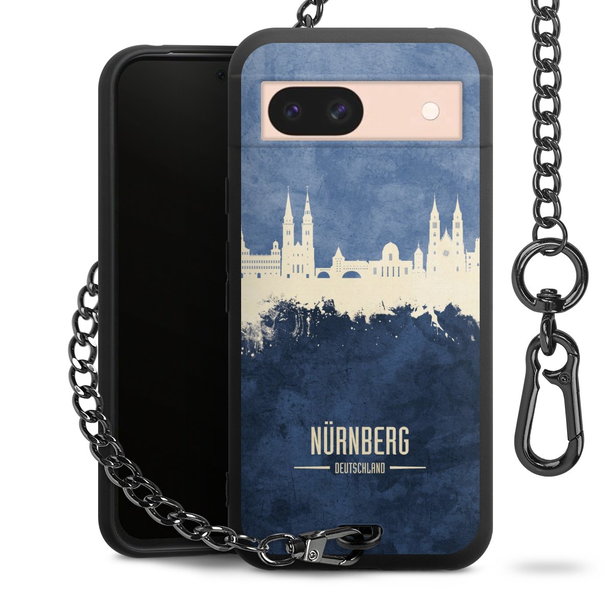 Die mattschwarze Silikon-Handyhülle besteht aus robustem TPU (thermoplastisches Polyurethan). Sie ist flexibel und schützt Dein Smartphone vor Stößen und Kratzern. Die Kette sowie der Karabinerhaken sind aus Metall in Gunmetal-Optik gefertigt. Für dieses Produkt kommen ausschließlich TÜV-geprüfte Materialien zum Einsatz.