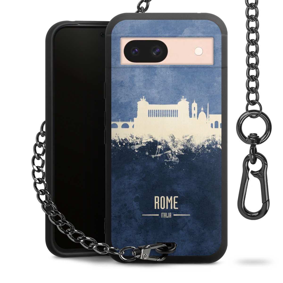 Die mattschwarze Silikon-Handyhülle besteht aus robustem TPU (thermoplastisches Polyurethan). Sie ist flexibel und schützt Dein Smartphone vor Stößen und Kratzern. Die Kette sowie der Karabinerhaken sind aus Metall in Gunmetal-Optik gefertigt. Für dieses Produkt kommen ausschließlich TÜV-geprüfte Materialien zum Einsatz.