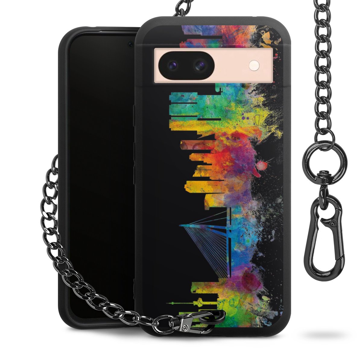 Die mattschwarze Silikon-Handyhülle besteht aus robustem TPU (thermoplastisches Polyurethan). Sie ist flexibel und schützt Dein Smartphone vor Stößen und Kratzern. Die Kette sowie der Karabinerhaken sind aus Metall in Gunmetal-Optik gefertigt. Für dieses Produkt kommen ausschließlich TÜV-geprüfte Materialien zum Einsatz.