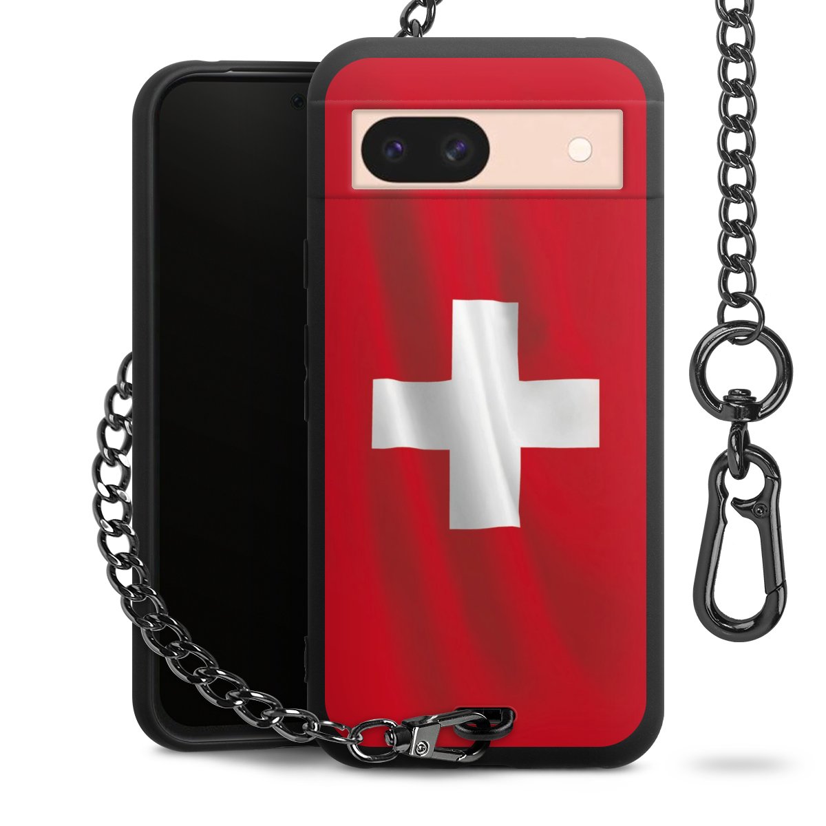 Die mattschwarze Silikon-Handyhülle besteht aus robustem TPU (thermoplastisches Polyurethan). Sie ist flexibel und schützt Dein Smartphone vor Stößen und Kratzern. Die Kette sowie der Karabinerhaken sind aus Metall in Gunmetal-Optik gefertigt. Für dieses Produkt kommen ausschließlich TÜV-geprüfte Materialien zum Einsatz.