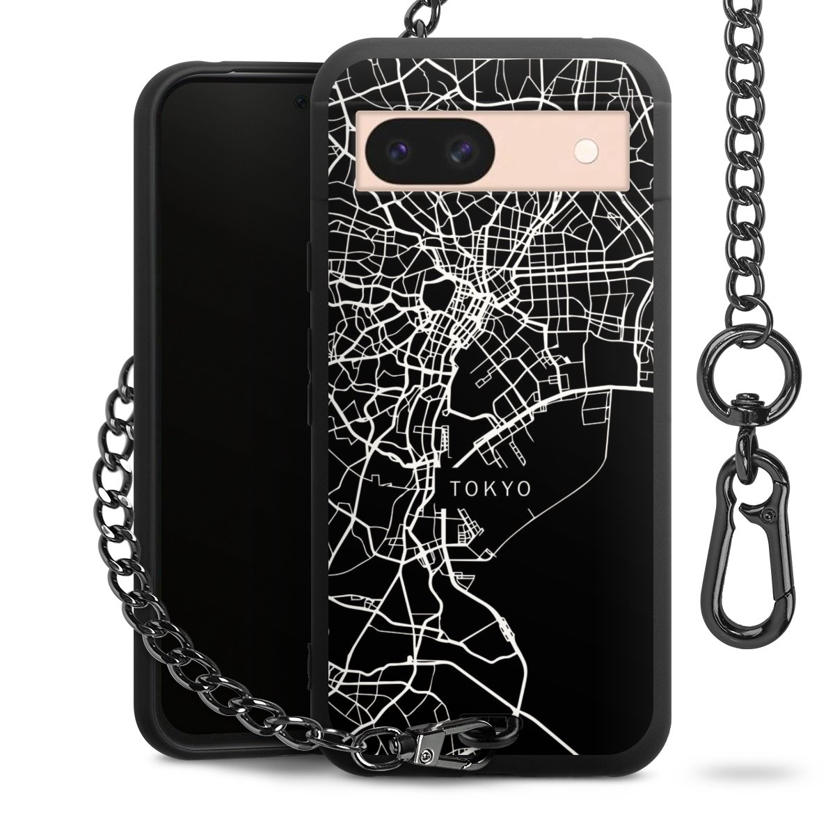 - Mattschwarze Handyhülle mit Metallkette