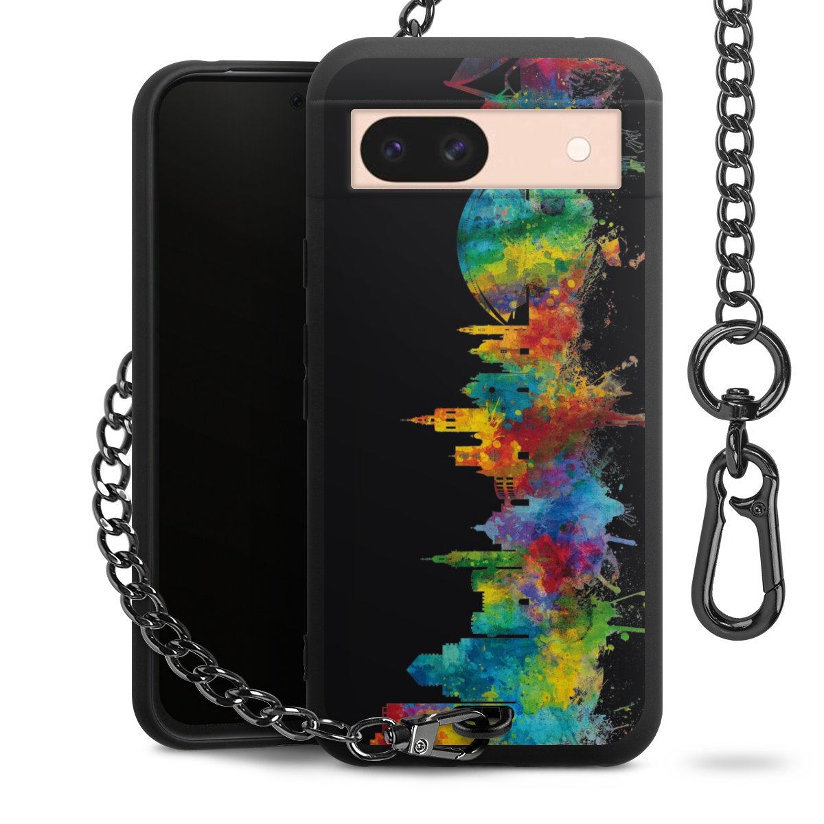 Die mattschwarze Silikon-Handyhülle besteht aus robustem TPU (thermoplastisches Polyurethan). Sie ist flexibel und schützt Dein Smartphone vor Stößen und Kratzern. Die Kette sowie der Karabinerhaken sind aus Metall in Gunmetal-Optik gefertigt. Für dieses Produkt kommen ausschließlich TÜV-geprüfte Materialien zum Einsatz.