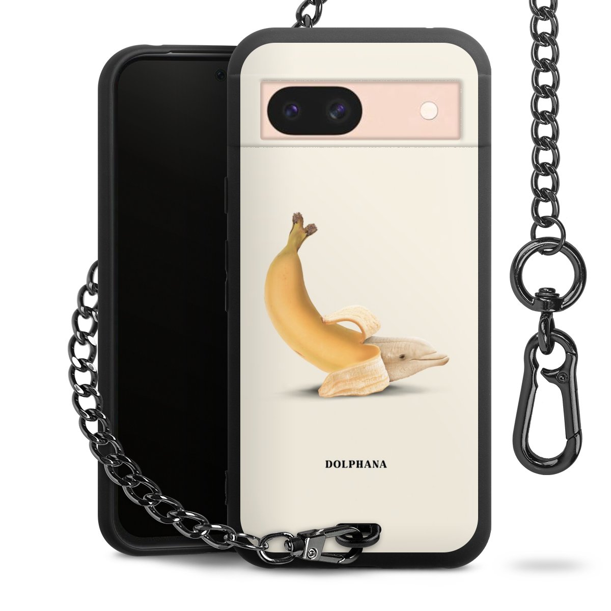 Die mattschwarze Silikon-Handyhülle besteht aus robustem TPU (thermoplastisches Polyurethan). Sie ist flexibel und schützt Dein Smartphone vor Stößen und Kratzern. Die Kette sowie der Karabinerhaken sind aus Metall in Gunmetal-Optik gefertigt. Für dieses Produkt kommen ausschließlich TÜV-geprüfte Materialien zum Einsatz.