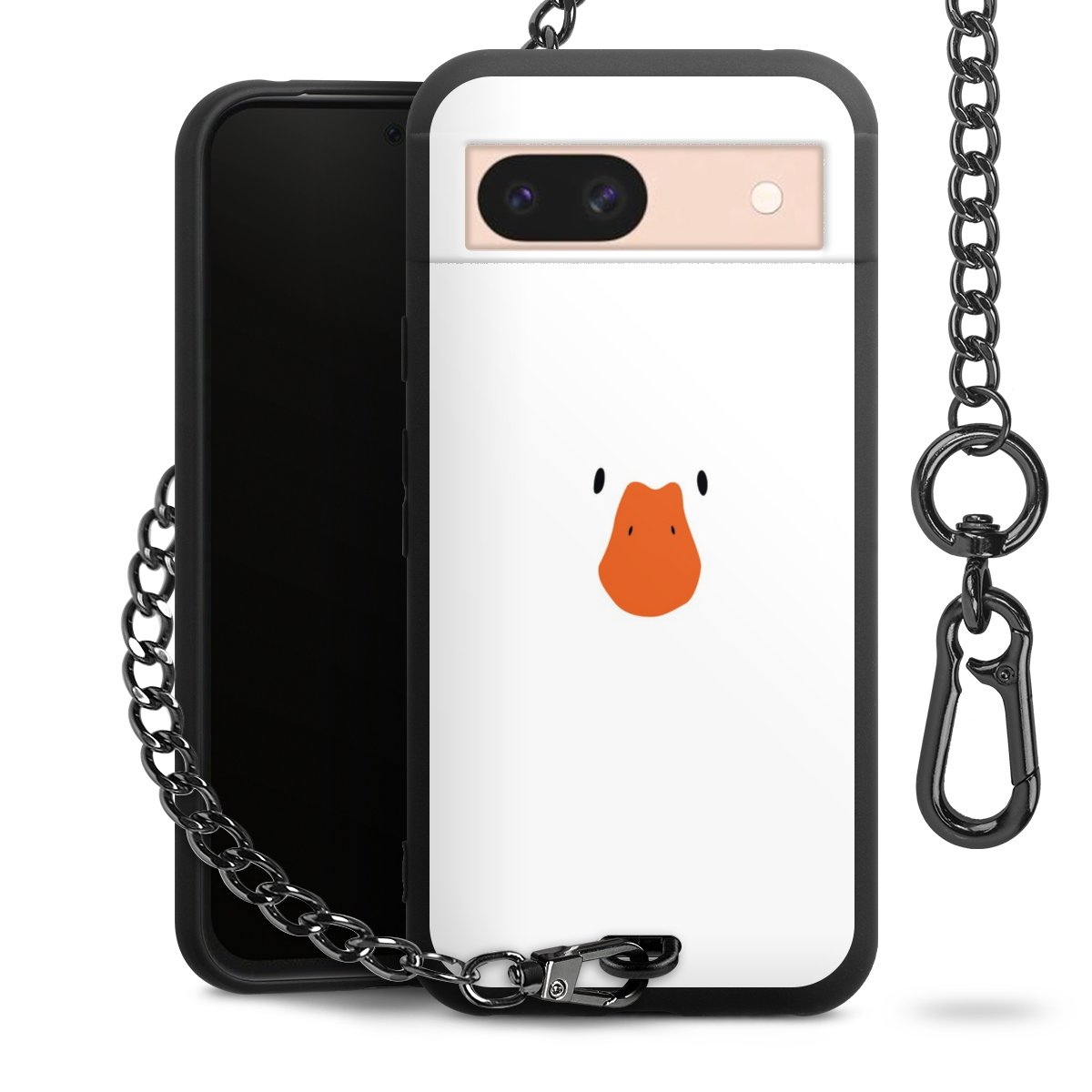 Die mattschwarze Silikon-Handyhülle besteht aus robustem TPU (thermoplastisches Polyurethan). Sie ist flexibel und schützt Dein Smartphone vor Stößen und Kratzern. Die Kette sowie der Karabinerhaken sind aus Metall in Gunmetal-Optik gefertigt. Für dieses Produkt kommen ausschließlich TÜV-geprüfte Materialien zum Einsatz.